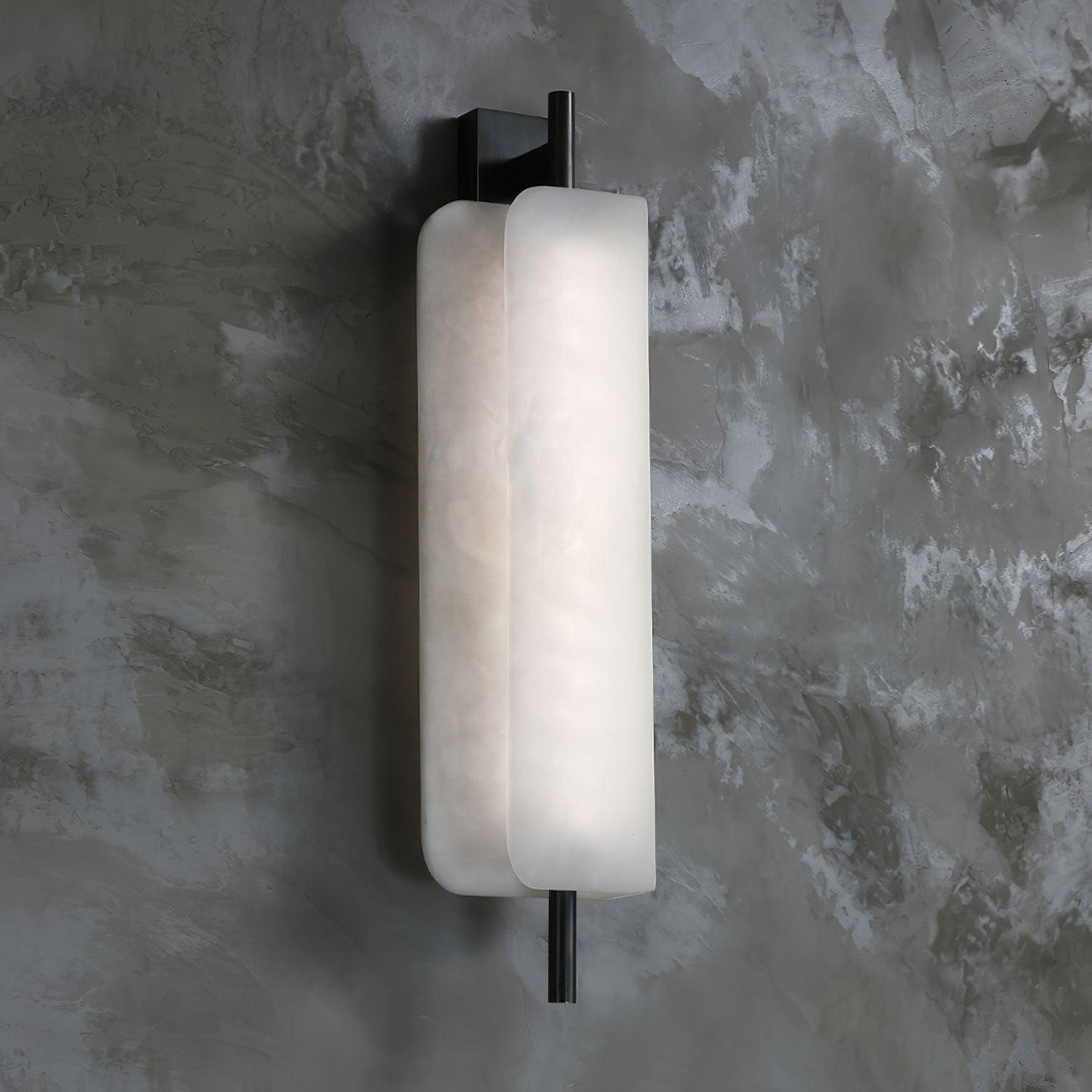 Our new Kinkairo collection is themed around alabaster. The elegant sconce is composed of a fluted sheet of alabaster, lit by built-in warm LEDs that highlight every swirl and vein in the stone.