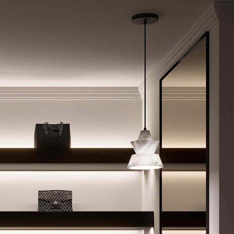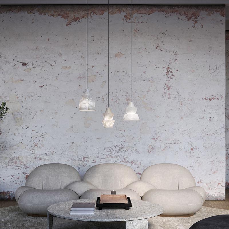 - With its three cones of various volumes, Iconic LAB offers a graphic geometry. A harmonious alabaster composition with perfect proportions. LAB is also available as a monumental pendant light and as a wall lamp.