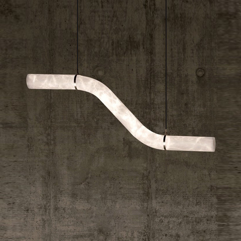 These pendant lights create a distinct dialog between space and light. Each model can be tilted and adjusted in height to adapt to the surrounding space. LIBERTY hangs from brass-covered cables, producing a semblance of levitation. Their powerful yet simple geometrical contours invite you to assemble, compose and combine them to create well-balanced sculptures. Created from alabaster tubes, you can hang them alone or in a composition, and their loft-style or industrial-type design will adapt to any interior.