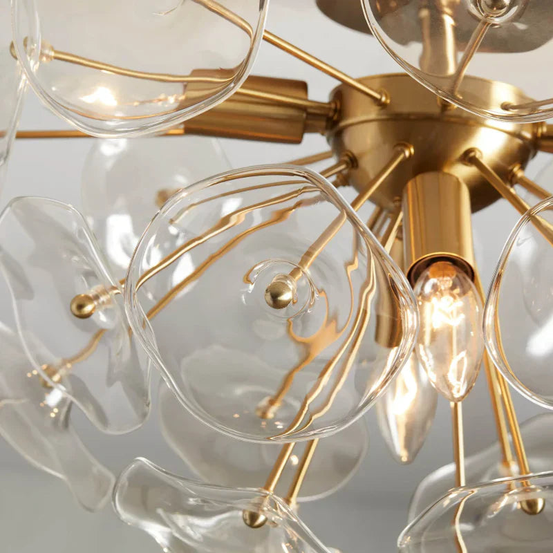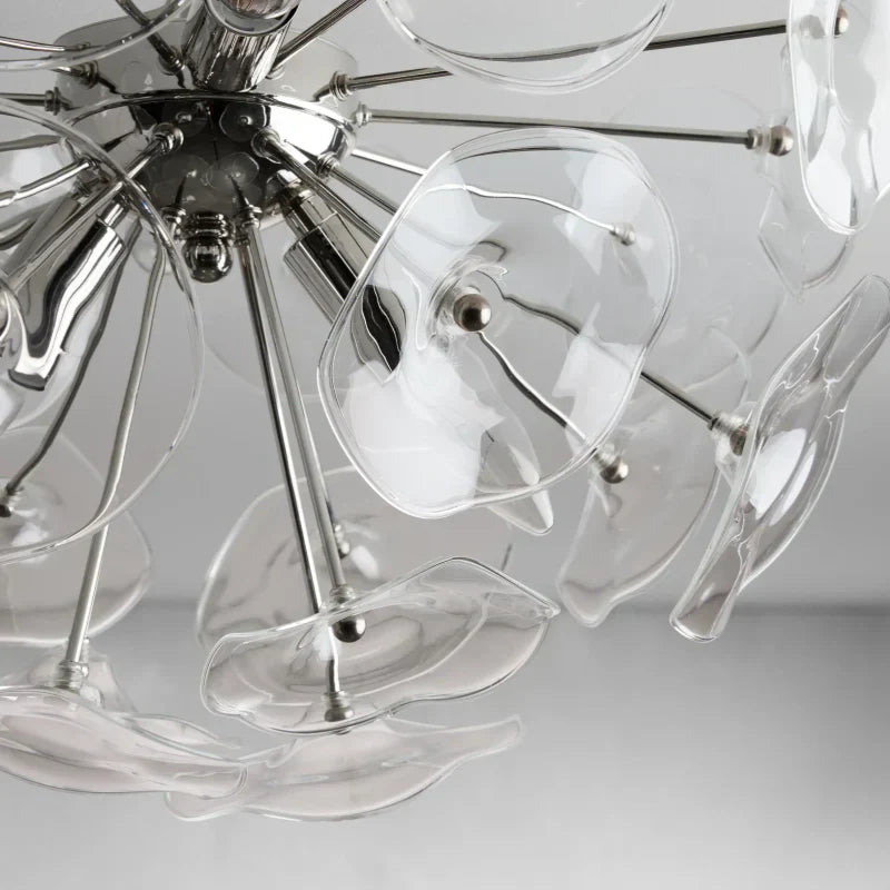 - Base is made from iron with a polished nickel or plated brass finish and surrounded by 22 glass petals.