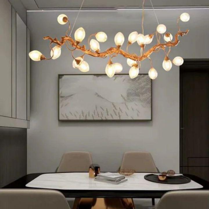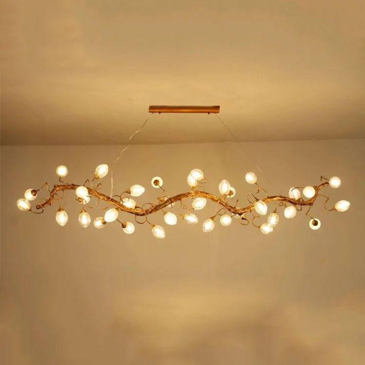This light luxury Lotus Chandelier features its lifelike, vivid branch form in brass finish, which is elaborately carved. It is designed as a unique shape with an egg-shaped glass shade containing many bubbles inside. The bubble glass is fantastic and clear. The light transmission is even and soft, no harshness, bright and comfortable. It gives an elegant, non-traditional and romantic style, making the vision more three-dimensional. Whether as a decorative piece or a lighting fixture, it makes a statement.Pefect to dining table,kitchen island,living room,etc. |