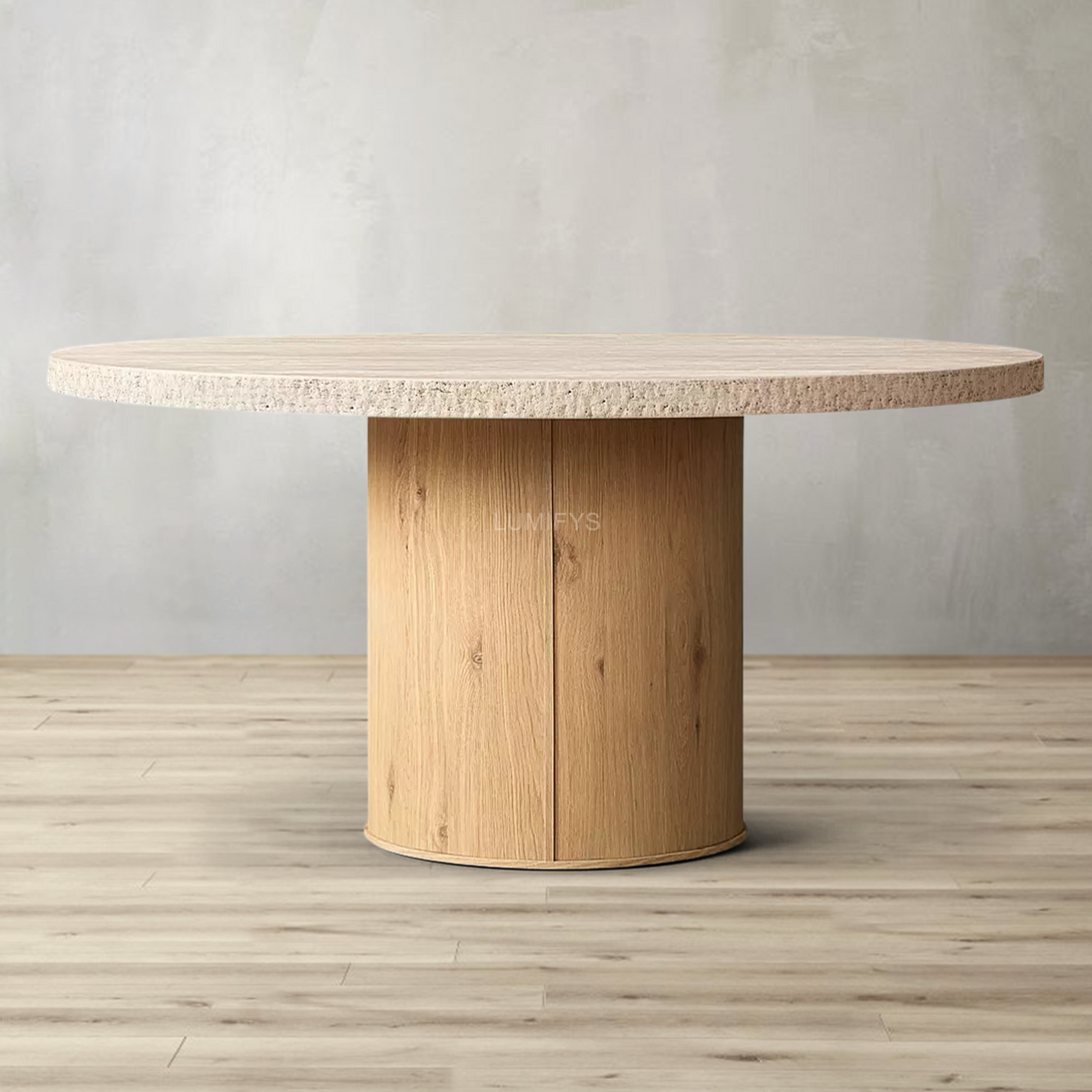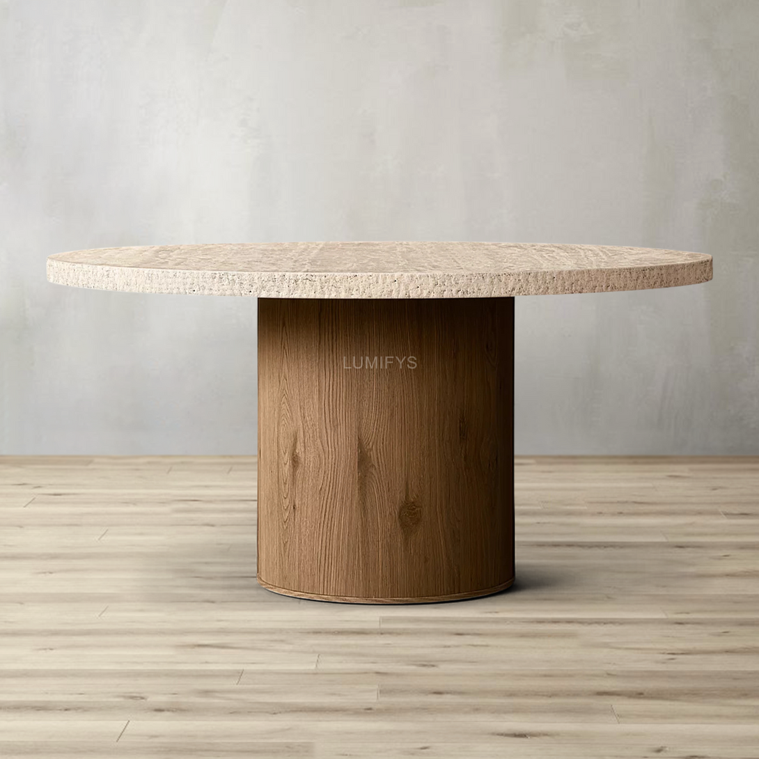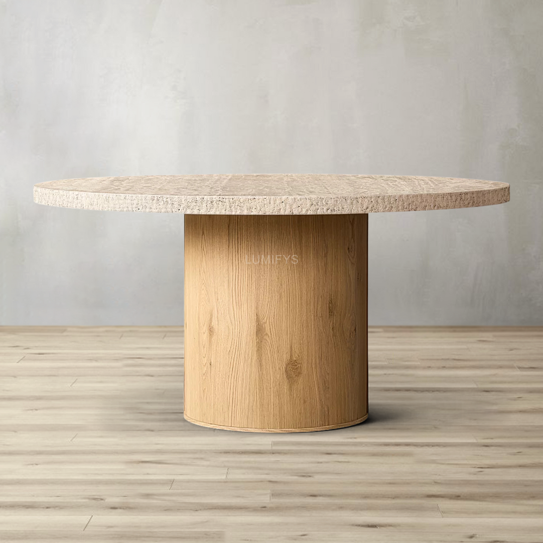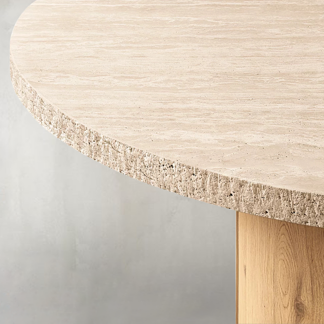 - Tabletop is crafted of ¾"-thick Turkish travertine over an engineered wood core