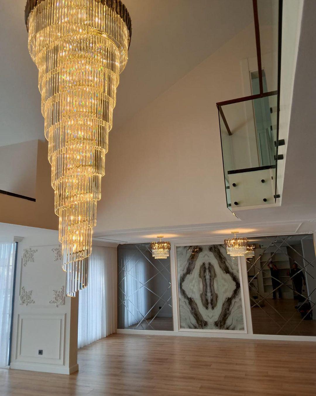 The whole light body is made of high-quality K9 crystal and metal. It is designed into a luxury modern style. It is absolutely stunning no matter light turns on or not.