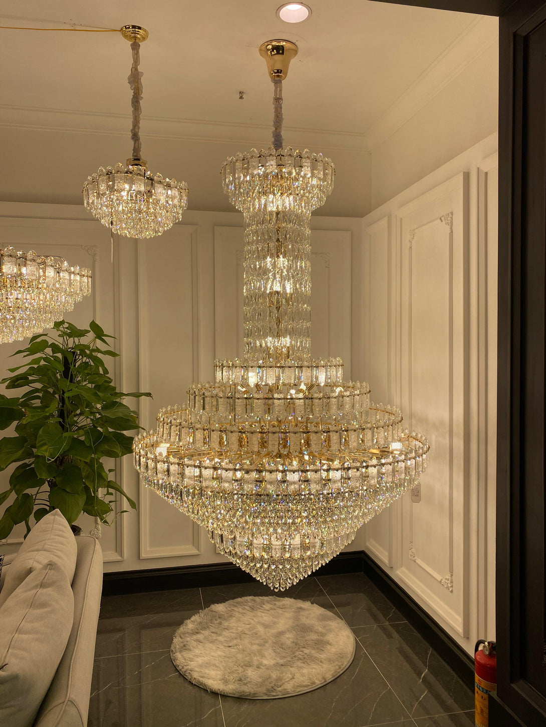 Expertly crafted for grand spaces, the Luxury Extra Large Multi-tiered Crystal Chandelier is the epitome of opulence and sophistication. Its delicate crystal tiers and cascading design will instantly elevate any staircase, foyer, or living room. Perfect for adding a touch of luxury to your home's décor.