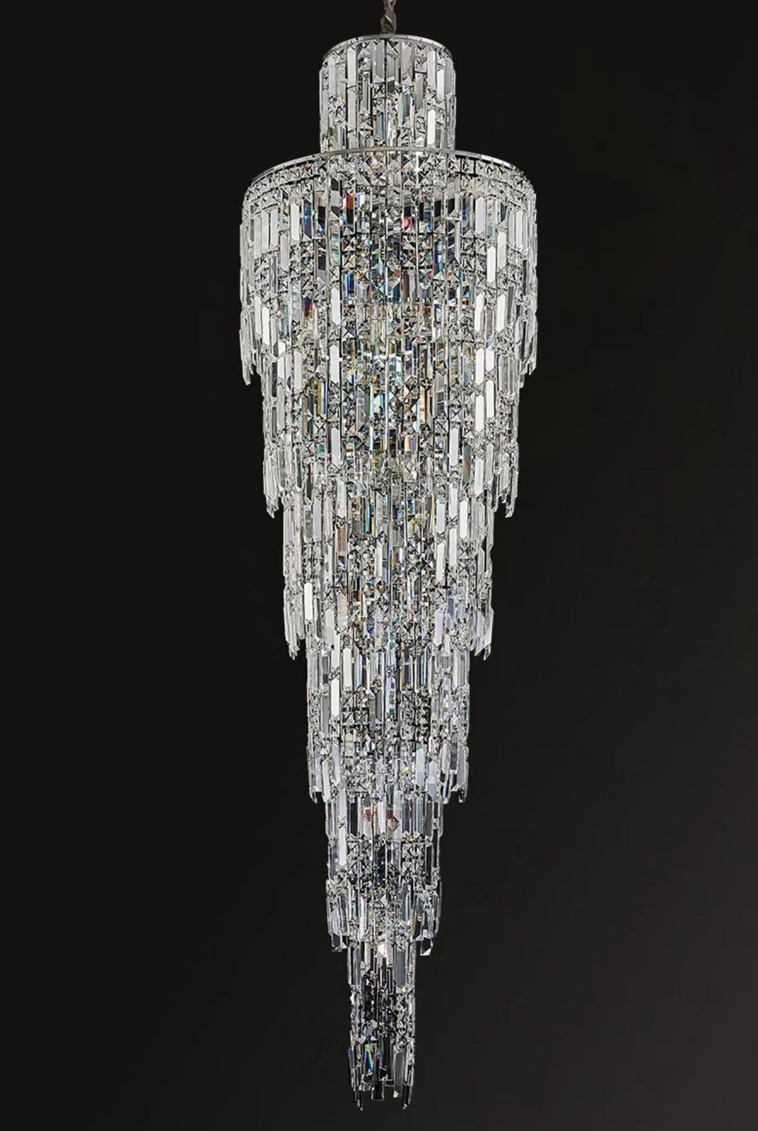 The whole light body is made of high-quality K9 crystal and stainless steel.This luxurious chandelier consists of multi-layer of crystal rods well arranged in circle form, showcasing the appreciation of orderliness. High-quality crystals as main material refract glistening and sparkling light for a dazzling and wondrous effect. Loops of regular circle, full of cool modern sense. Absutely a visual focal point as modern home decor. Extra long size, perfect for staircase, large living room, big hallway, hotel lobby, villas, duplex, or any high ceiling space.