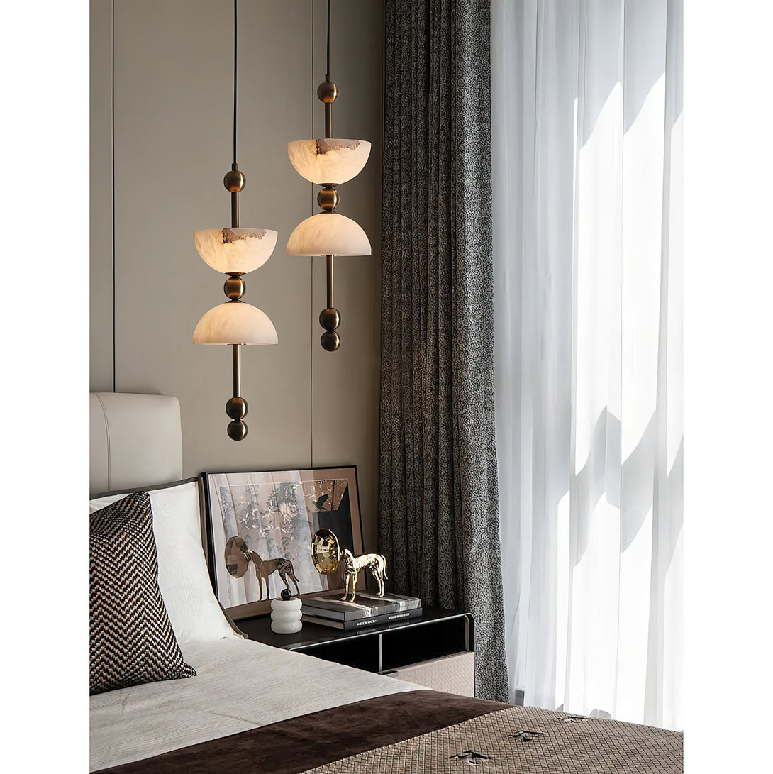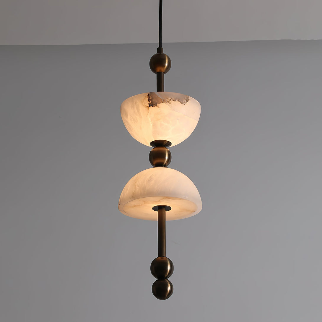 Elevate your space with the Lyra Alabaster Pendant Lamp, featuring a warm brass body paired with a delicate alabaster lampshade. This lamp casts a soft, inviting glow, creating an elegant atmosphere while showcasing refined craftsmanship. Ideal for adding a touch of timeless sophistication to any room.