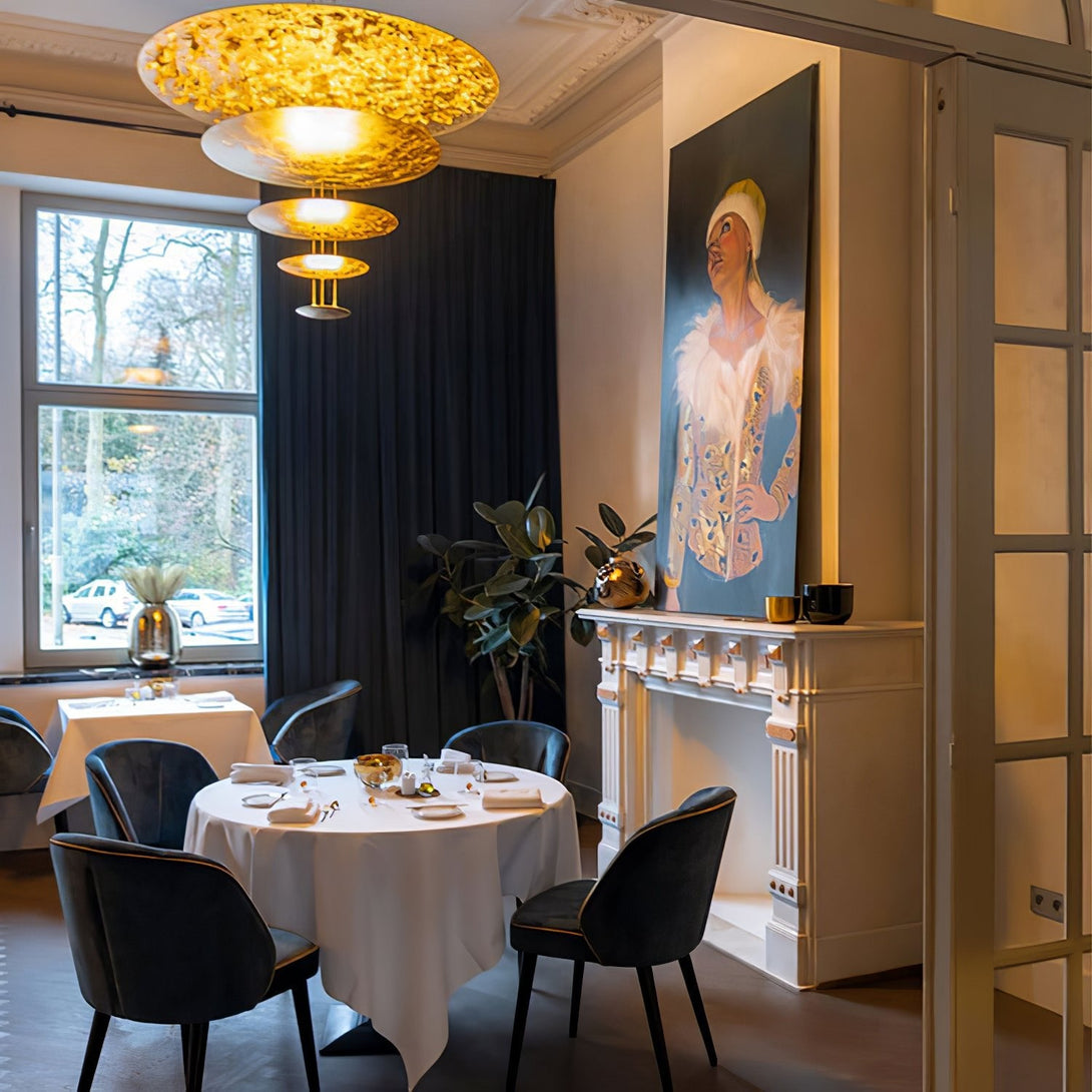 Illuminate any room with the Machine Chandelier, featuring a warm and inviting glow. Ideal for creating ambiance, this chandelier adds a touch of elegance to your home decor.