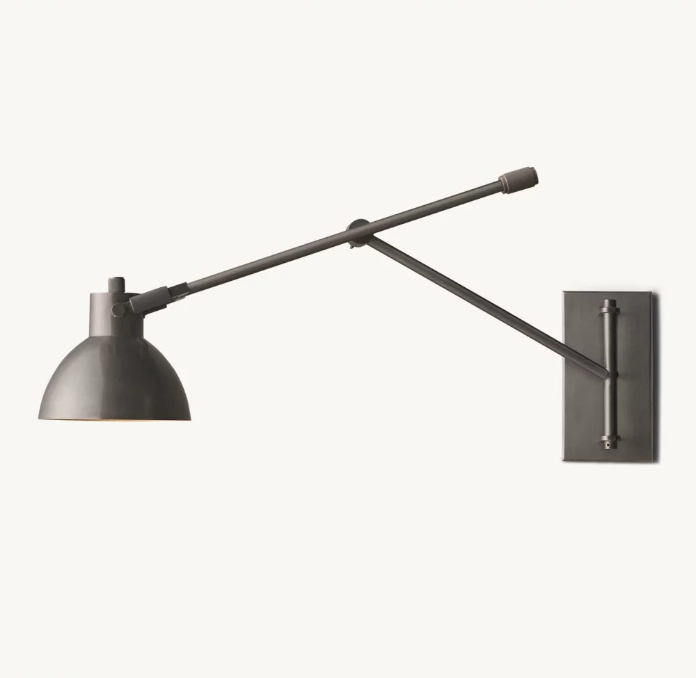 In an elevated spin on utility, our Machinist task sconce by Jonathan Browning is inspired by the functional fixtures used in workshops and factories throughout the mid 20th century. Bridging the line between heritage and modernity, the classic domed cloche shade is held in place by a sleek geometric metal yoke, whose precision craftsmanship is defined by crisp angles, diamond knurling and exposed bolts. Adjustment points at the wall, arm and shade allow focused illumination.