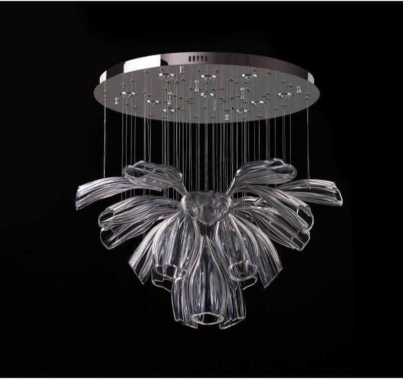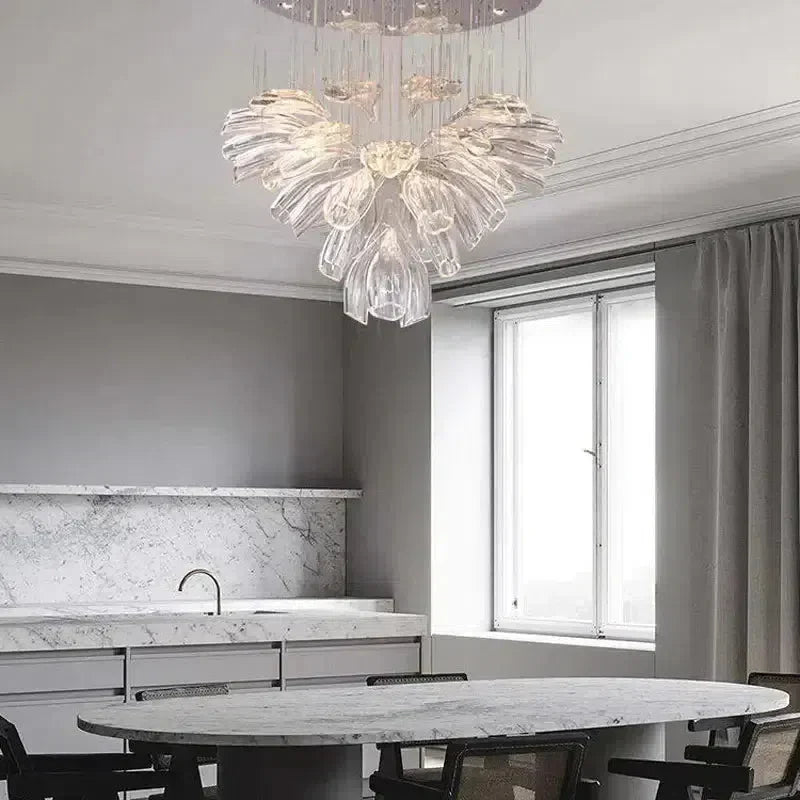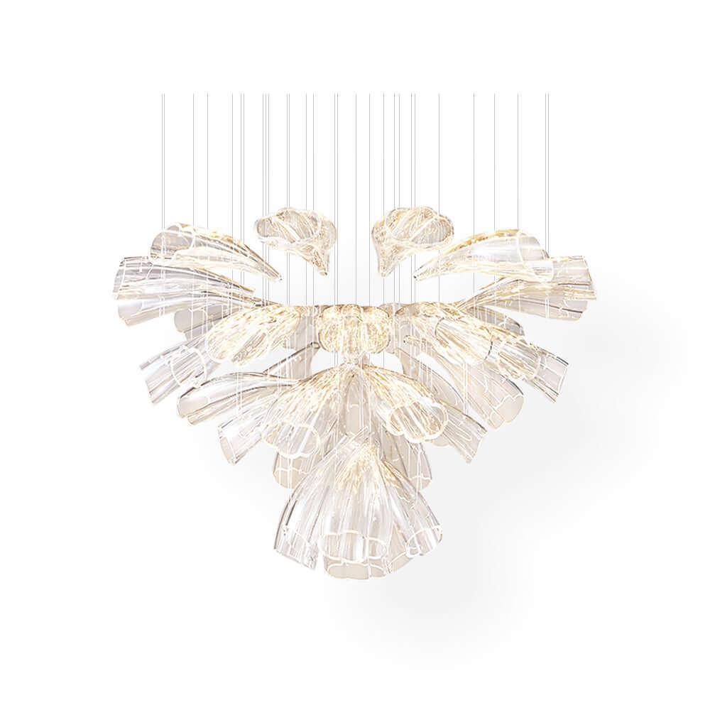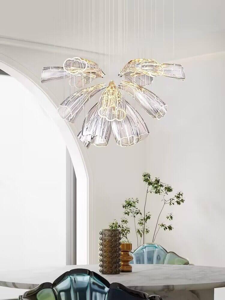 Introducing the Glass Lotus Chandelier — a stunning lighting fixture that combines classic beauty with modern elegance. Its glass encasing, full of intricate detailing, creates a glittering and captivating atmosphere in any space. Let the Glass Lotus Chandelier light up the room and bring a touch of nature indoors.