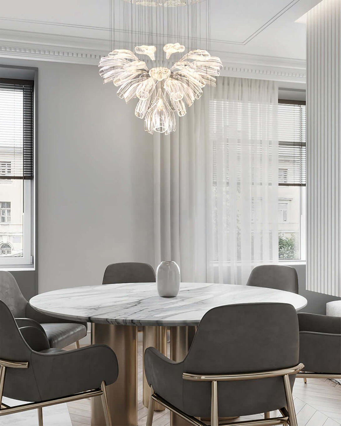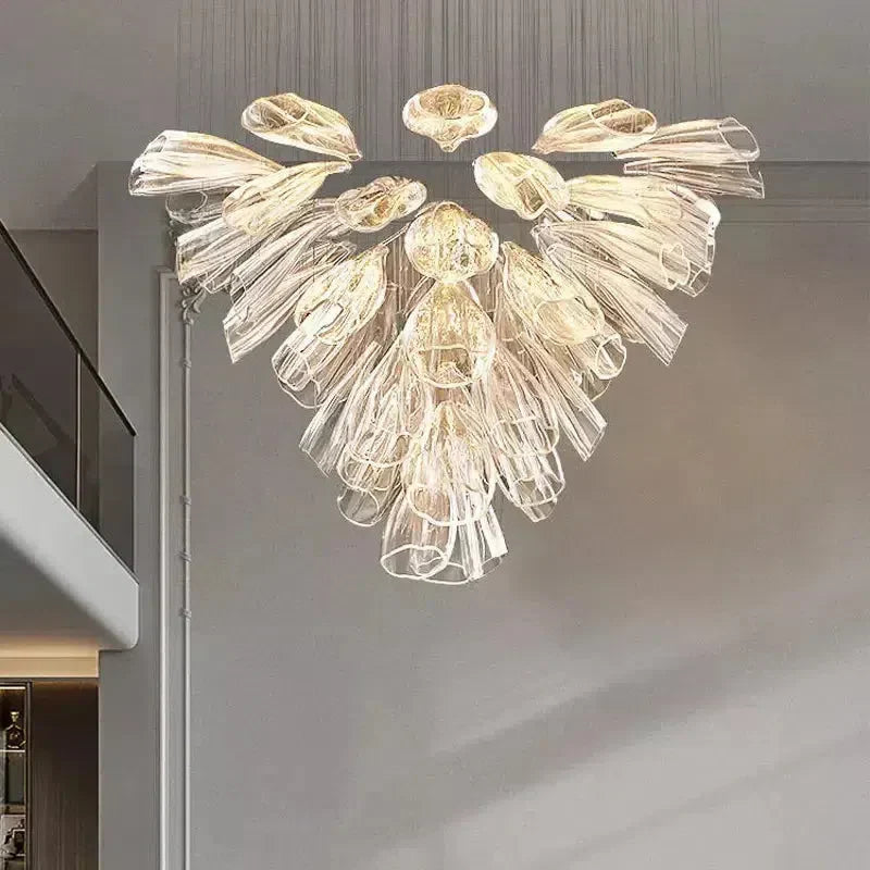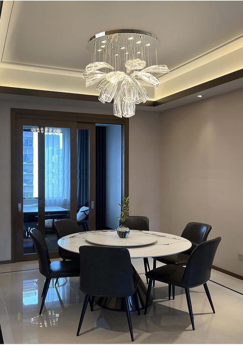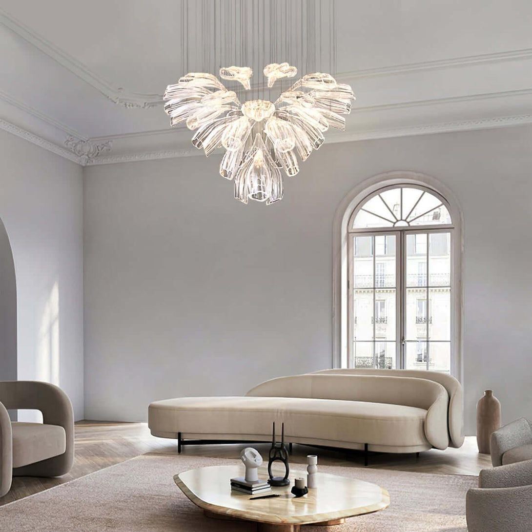 Introducing the Glass Lotus Chandelier — a stunning lighting fixture that combines classic beauty with modern elegance. Its glass encasing, full of intricate detailing, creates a glittering and captivating atmosphere in any space. Let the Glass Lotus Chandelier light up the room and bring a touch of nature indoors.