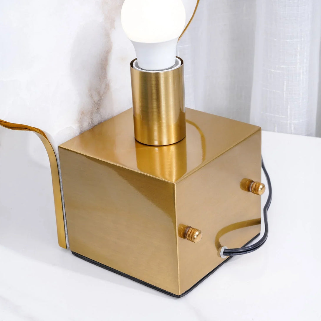 When illuminated, the alabaster radiates a soft, diffused glow, creating a serene atmosphere ideal for bedrooms, living rooms, or entryways. With its minimalist yet sculptural design, this lamp functions as both a functional light source and a captivating décor piece.