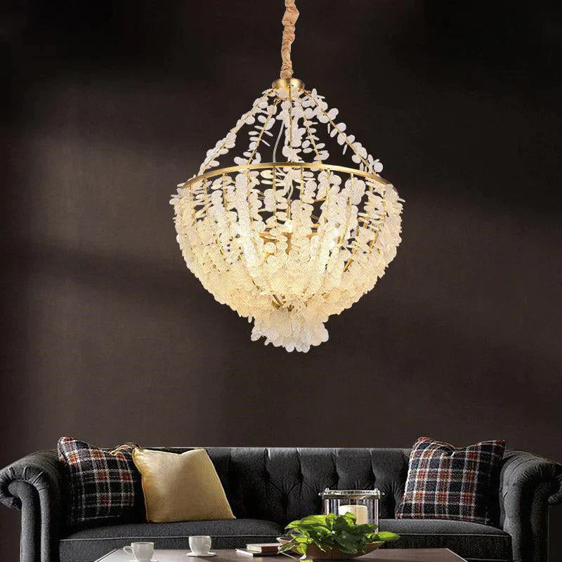 Ada Modern Round Chandelier, Pendant Light is a luxurious chandelier made of brass, and glass discos. Inspired by the organic nature, this chandelier is a great choice for 2 story foyer, or the staircase. It is an elegant, charming, looks like a blossom tree.