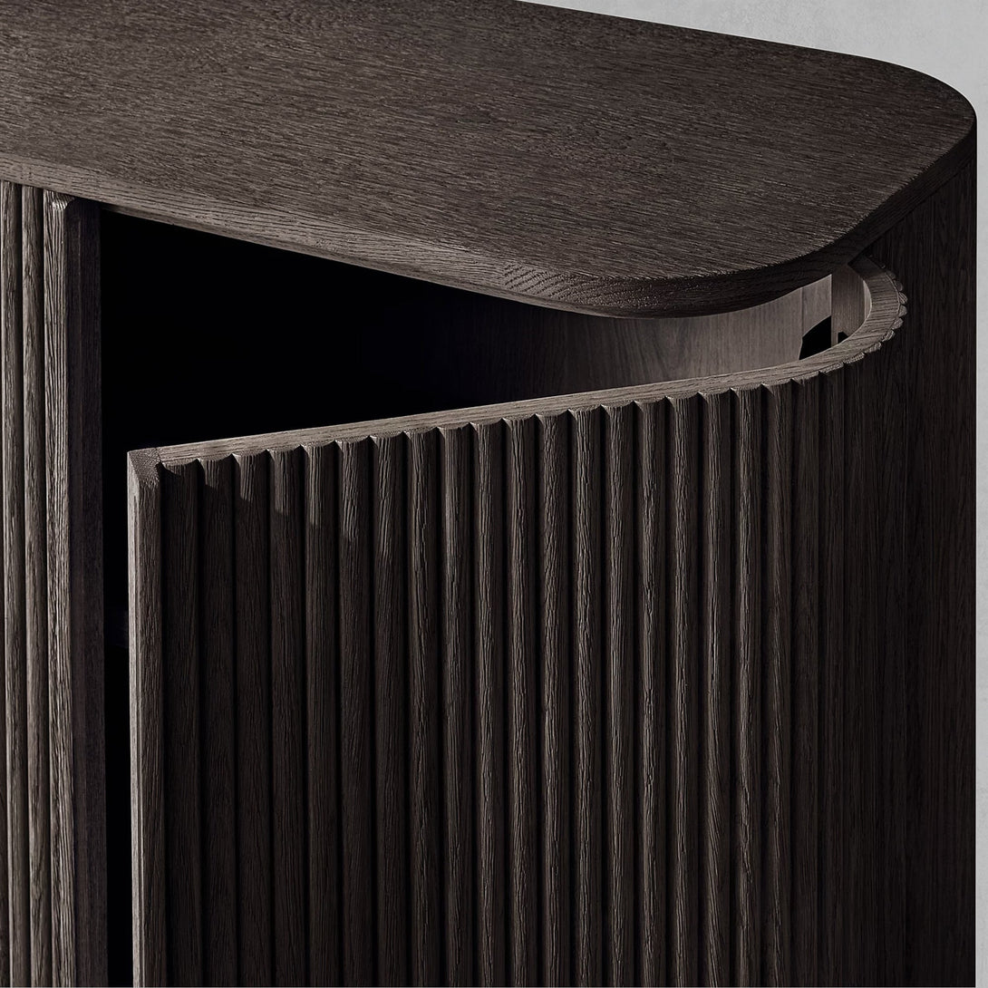 Arts & Techniques | - Crafted from kiln-dried solid wood and engineered wood with American oak veneers, this piece undergoes an intensive multistep finishing process to achieve a matte surface with a clearly visible grain. - The vertical surfaces are adorned with solid oak reeding, adding texture and depth to the sideboard’s overall design. |