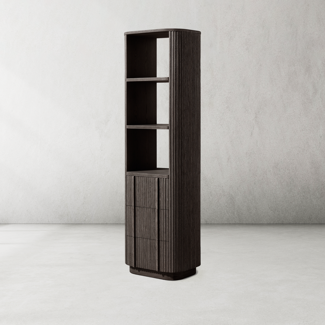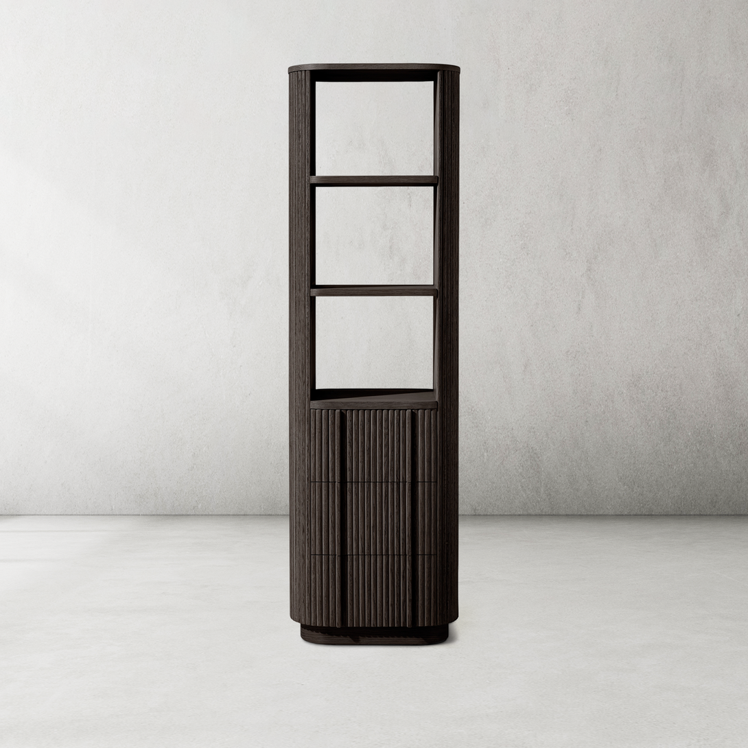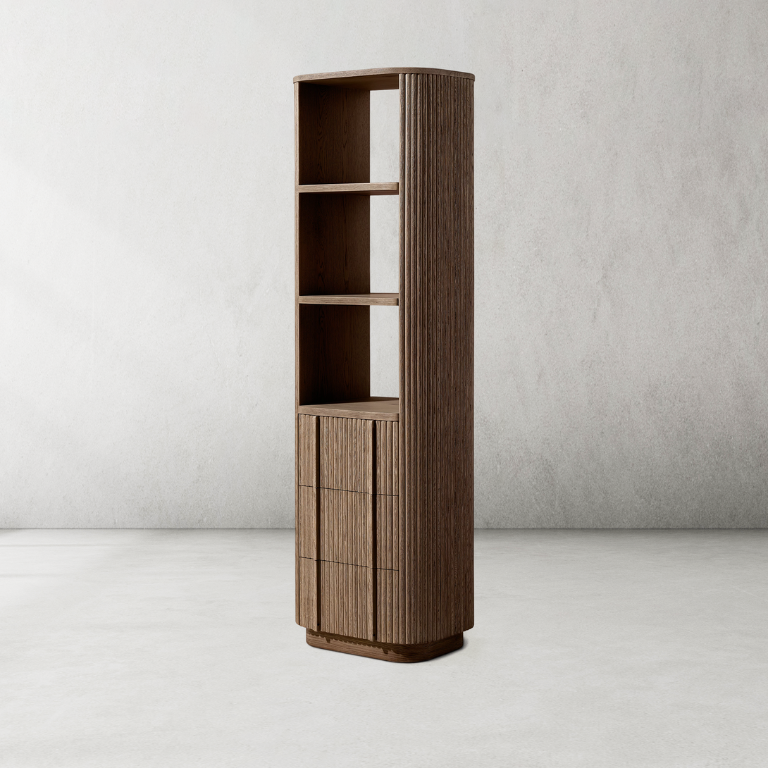 Key Features | - Crafted from kiln-dried solid American oak and engineered hardwood with American oak veneers. - Multistep finishing process gives the table a matte surface with visible grain. - Vertical surfaces feature solid oak reeding for texture. - Doors have magnetic closures and soft-close hinges for smooth operation. - 3 soft-close drawers with integrated finger pulls; drawer interiors are finished to complement the exterior. - 2 fixed shelves. |