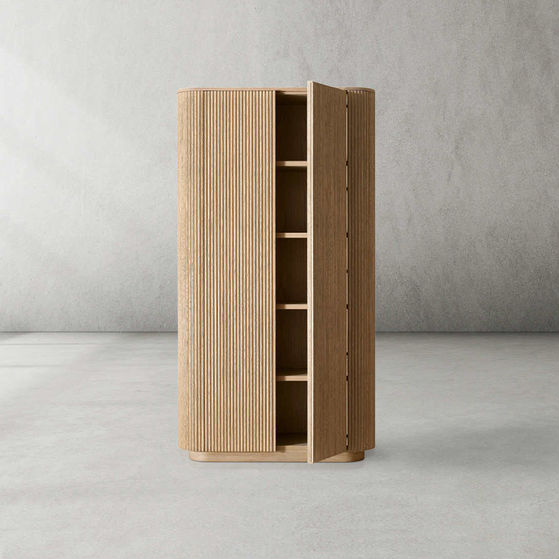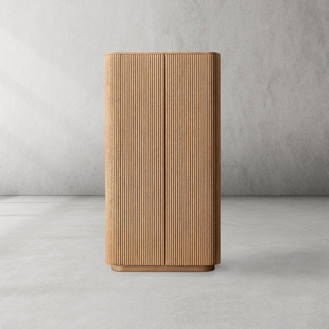 Arts & Techniques | - Crafted from kiln-dried solid wood and engineered wood with American oak veneers, this piece undergoes an intensive multistep finishing process to achieve a matte surface with a clearly visible grain. - The vertical surfaces are adorned with solid oak reeding, adding texture and depth to the sideboard’s overall design. |