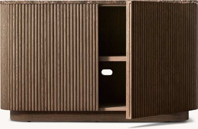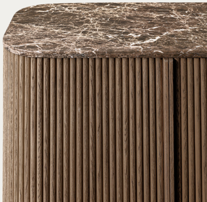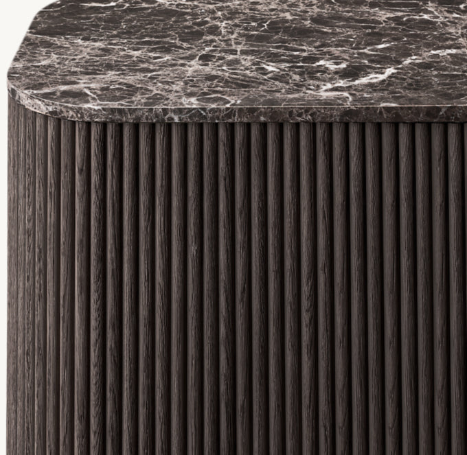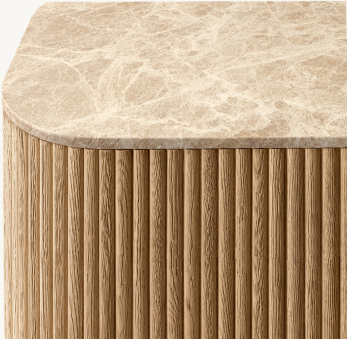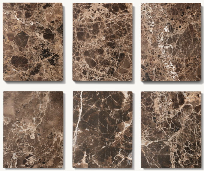 - Top crafted of ¾"-thick Spanish or Turkish marble over an aluminum honeycomb core