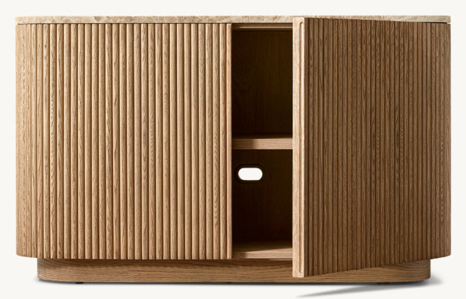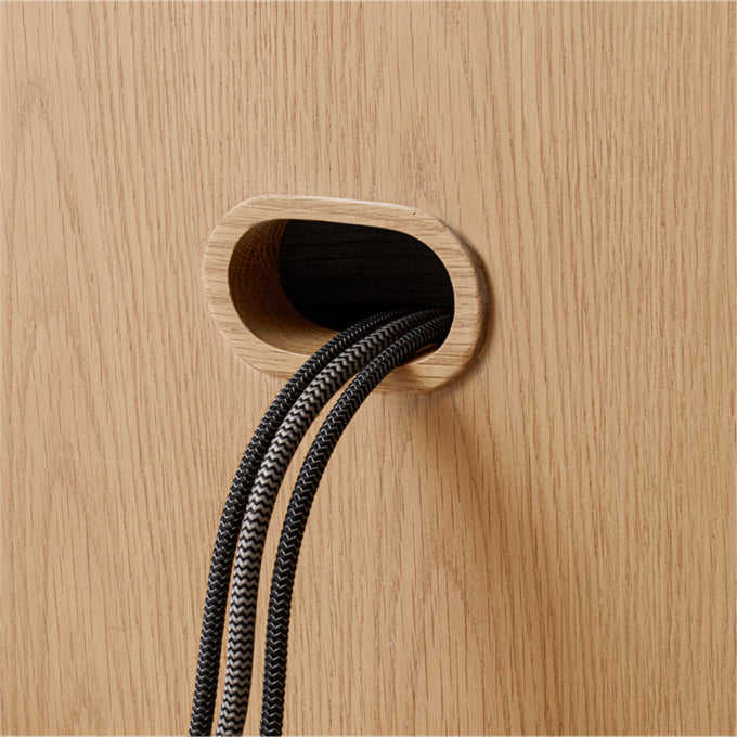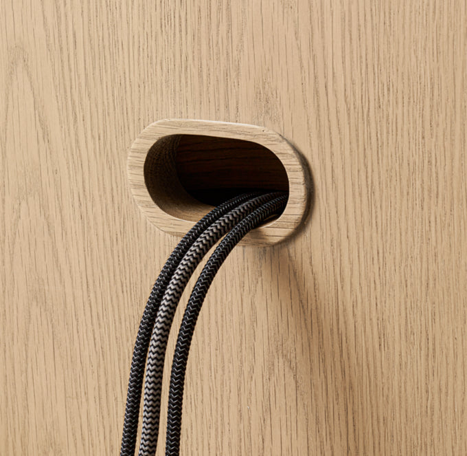 - Cord cutout in back panel for wire management; cord cutout has a wood grommet in a complementary finish