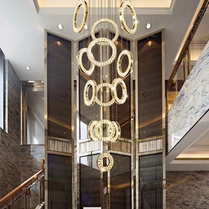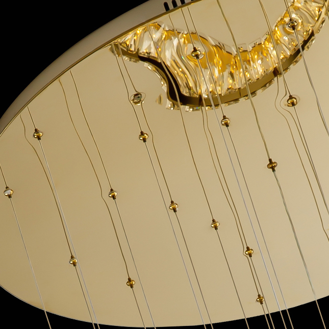 This very eye-catching ring round crystal ceiling light fixture has creative design and superior quality and hand-picked K9 crystals which make the room extremely glittering and shinning. This modern interior decoration with the rich luxury of this chandelier lends golden warmth. It is heavily accentuated with clear, faceted crystals. It is far more stunning than the picture. This ceiling light could create a different modern and simple style in your living room, bars, etc.