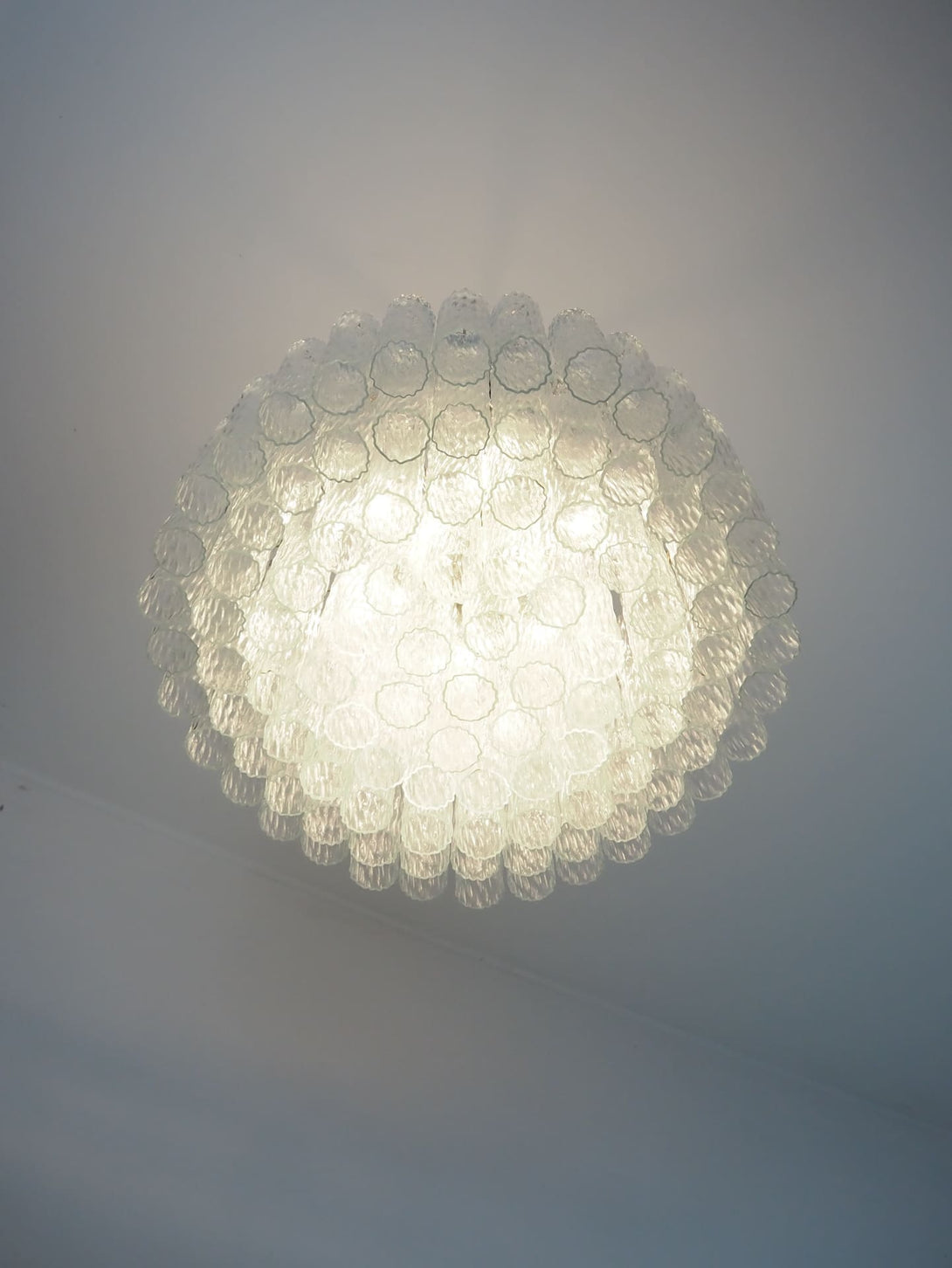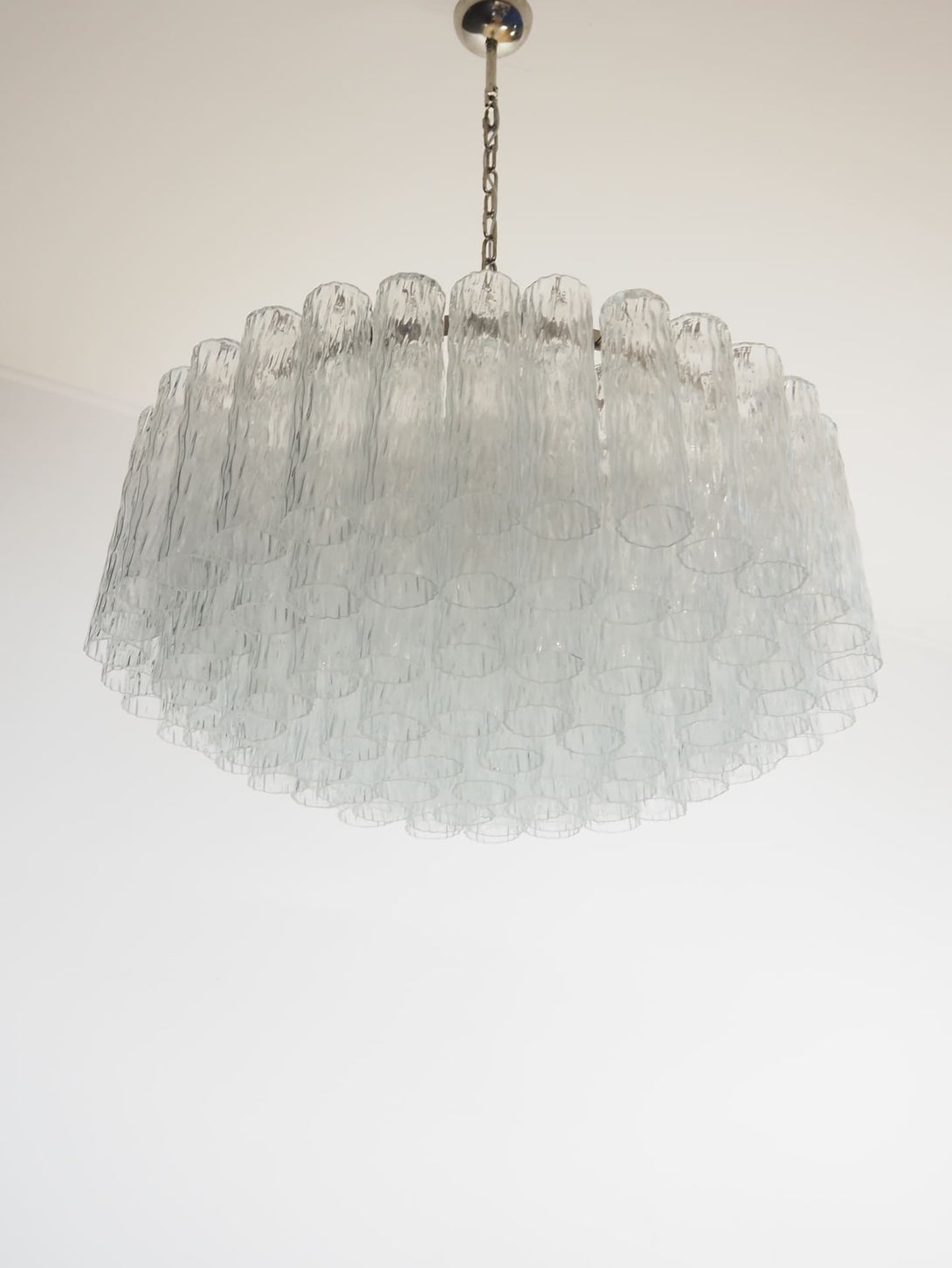Upgrade your home with our Italian chandelier, with clear Murano glass. The elegant design features 101 impressively large clear glass tubes, each with a textured effect, creating an enchanting “ice”-like chandelier.