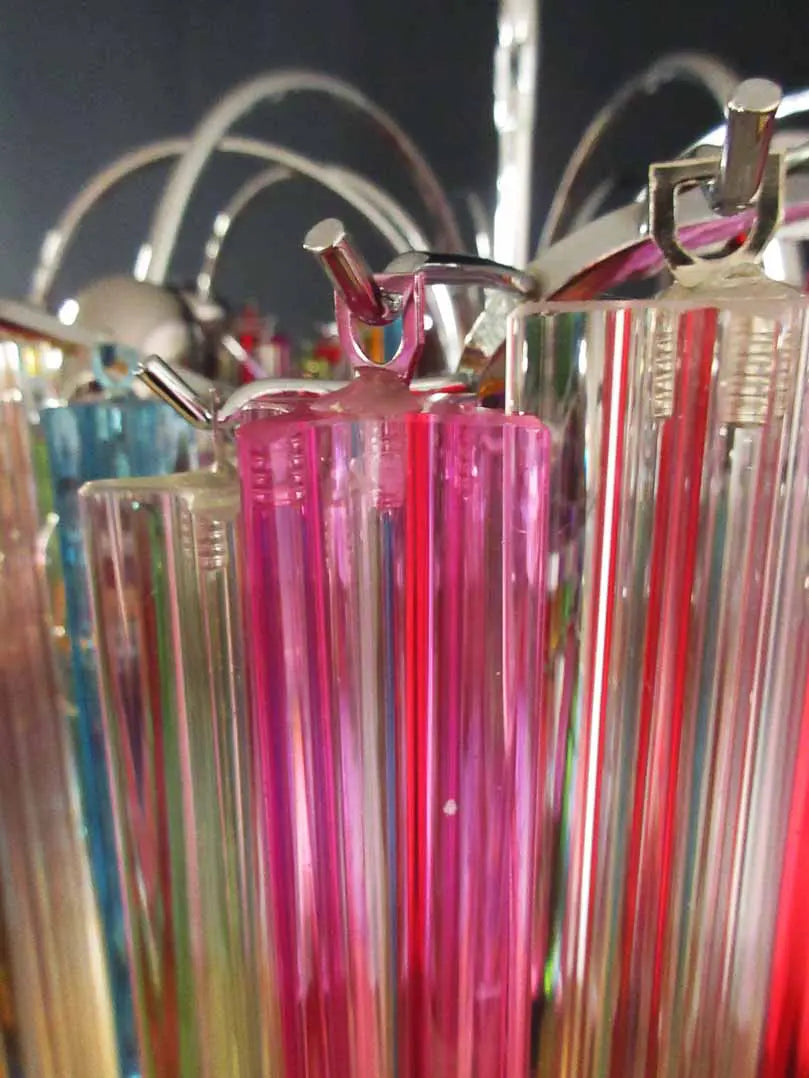 Let your decor shine with our stunning Murano chandelier, a true tribute to Italian glass craftsmanship. This unique chandelier is made of 200 multi-colored crystal prisms that create an enchanting play of color and light.