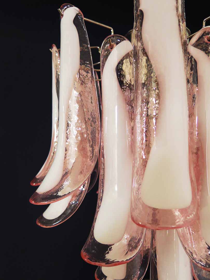 Treat your home to sublime elegance with our stunning Italian Murano chandelier in Mazzega style. This impressive chandelier is adorned with 26 large and impressive pink/white petals that create an enchanting and inviting light.