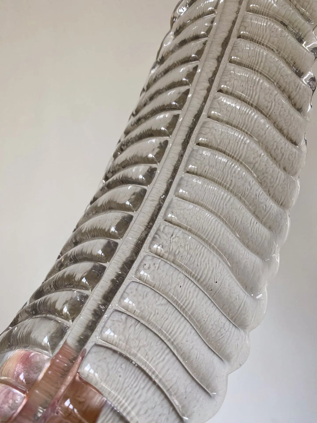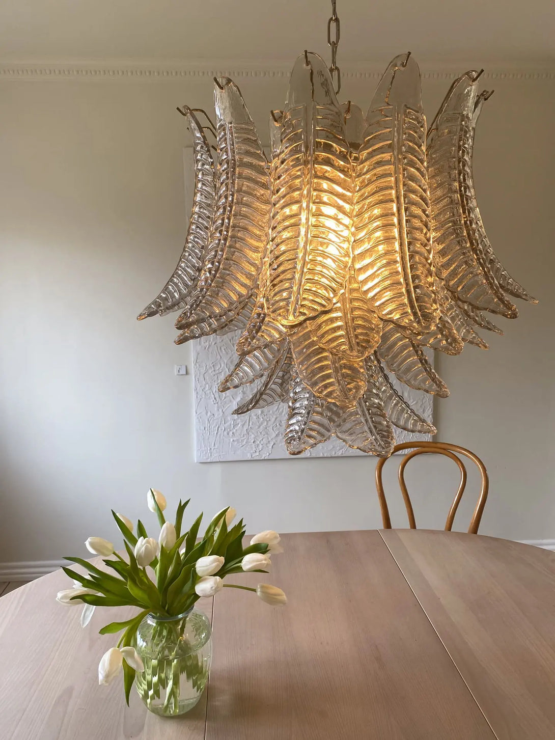 With its 36 delicate smoke-colored glass feathers floating on a seductive chrome frame, it adds a touch of sophistication to any decor. Be seduced by the subtle play of light and impressive craftsmanship that makes this chandelier a masterpiece of Italian glass art.