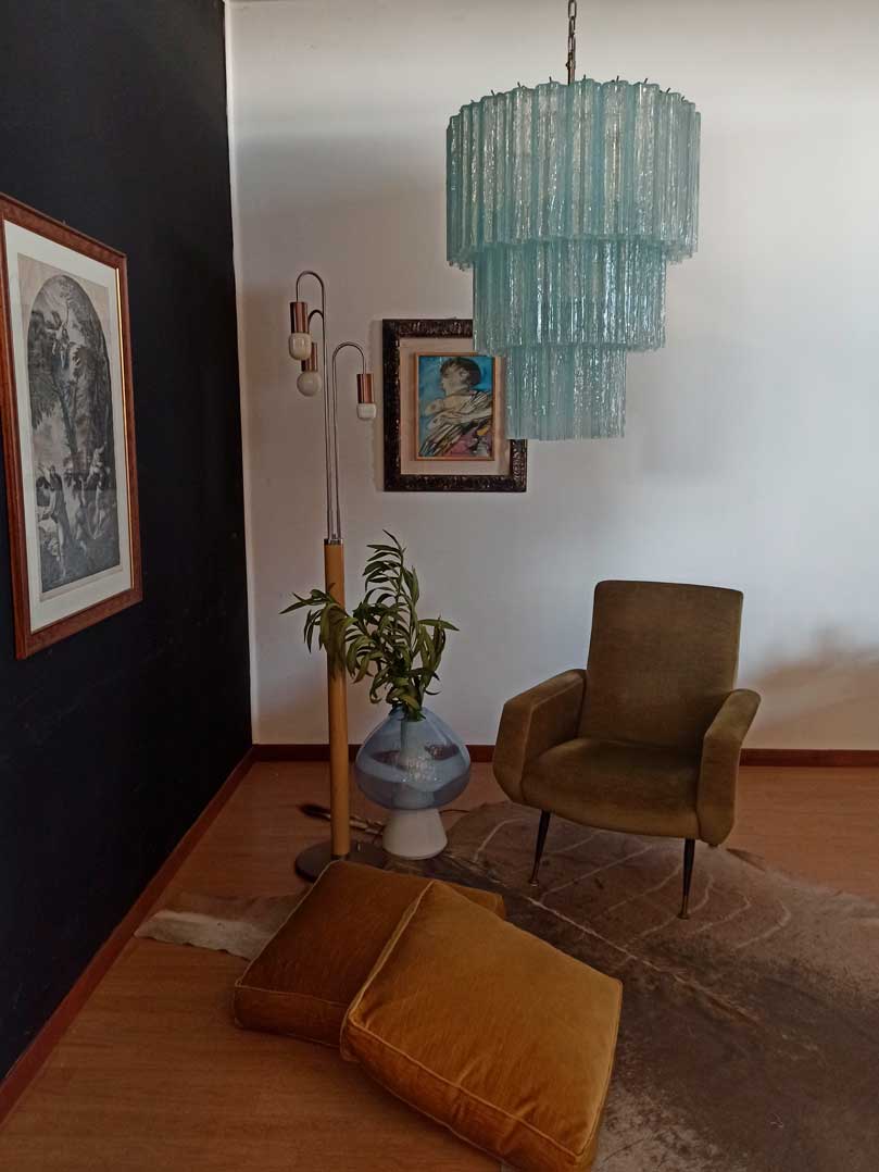 Treat your home to a mood of elegance and sophistication with our elegant Italian chandelier. This impressive chandelier is made from 52 beautiful opal-colored Murano tubes with an enchanting star shape.