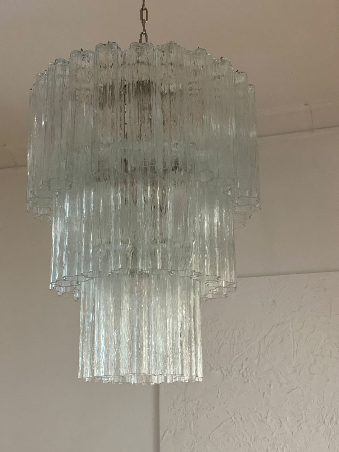 Treat your home to a mood of elegance and sophistication with our elegant Italian chandelier. This impressive chandelier is made from 52 beautiful transparent Murano tubes with an enchanting star shape.
