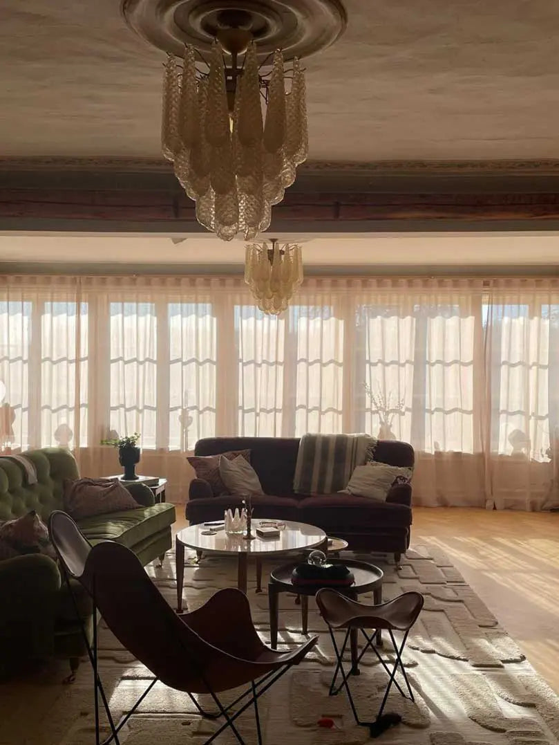 Upgrade your space with the stunning Murano Chandelier. Expertly crafted with 41 amber glass drops, this chandelier is sure to make a statement. Elevate your room's ambience with the warm, inviting glow emitted by the exquisite hand-blown glass. Add a touch of elegance and sophistication to any room.