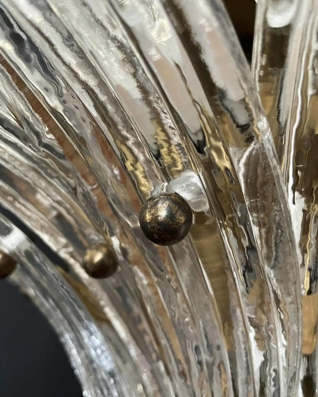 Expertly crafted, this Murano chandelier features a stunning Palmette design and is adorned with 163 hand-blown glass pieces in a smoked finish. Bring a touch of elegance to any space with this unique and exquisite lighting fixture.