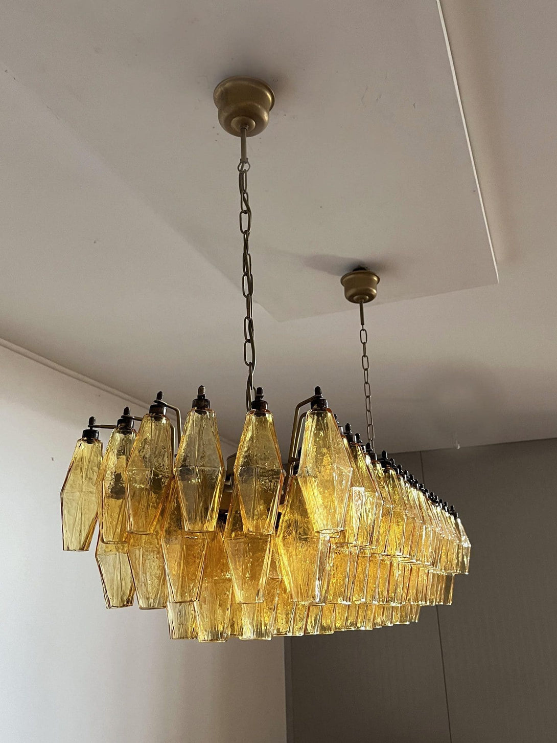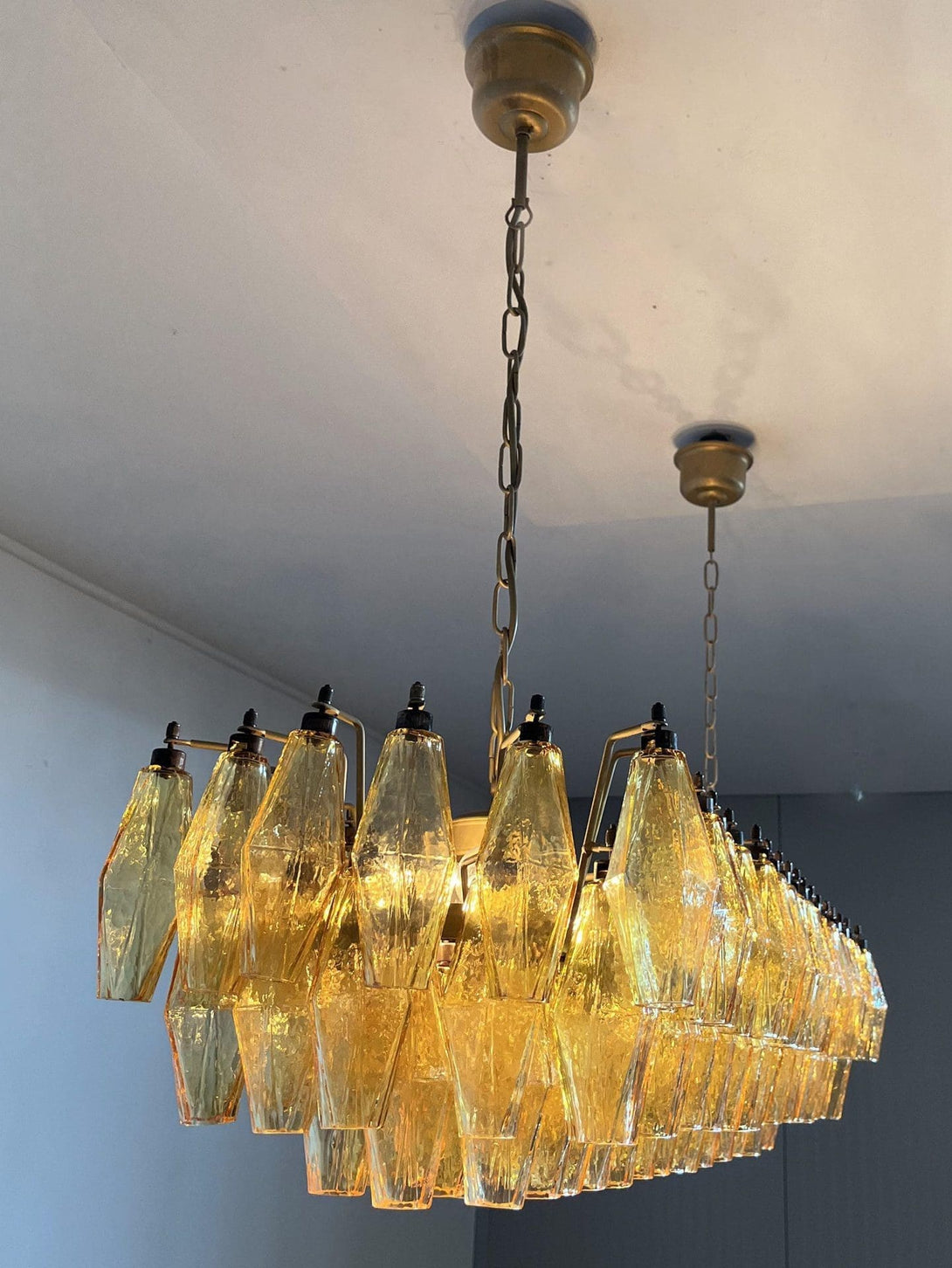 Achieve sublime elegance in your home with our Italian Murano chandelier, a masterpiece of glass craftsmanship. Each of the 138 handmade and mouth-blown transparent Poliedri glasses reflects light and spreads an enchanting glow in any room.