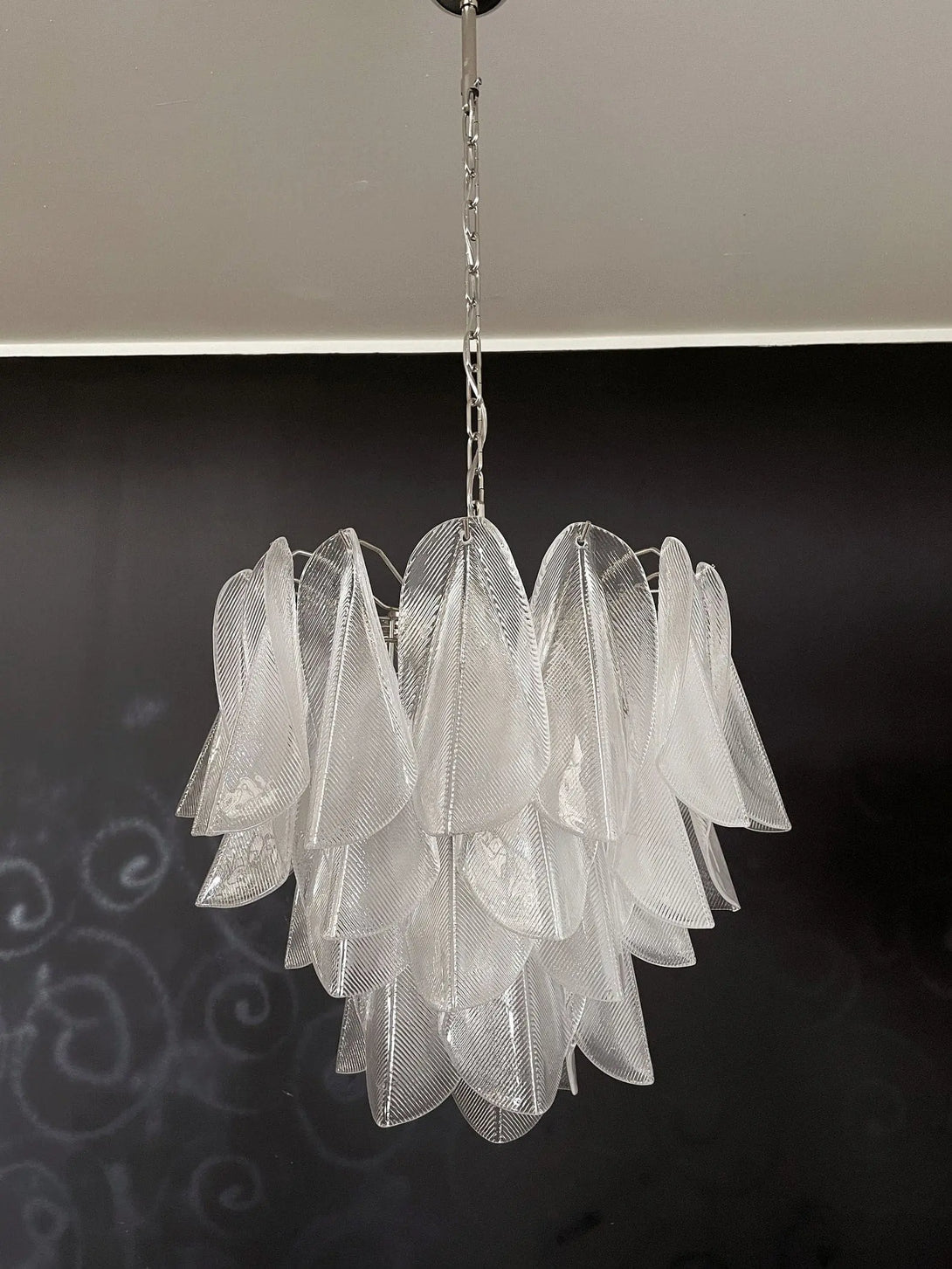 Introducing the Murano Chandelier - Rondini, featuring 41 handcrafted glass leaves in a stunning transparent design. With authentic Murano craftsmanship, this chandelier adds a touch of elegance and sophistication to any space. Elevate your lighting with a touch of Italian style.