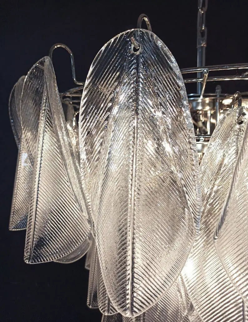 Expertly crafted in Murano, Italy, the Rondini chandelier boasts 57 transparent glass leaves for a stunning display of light. With its delicate design and precision, this chandelier adds an elegant touch to any space. Elevate your decor with this timeless piece of art.