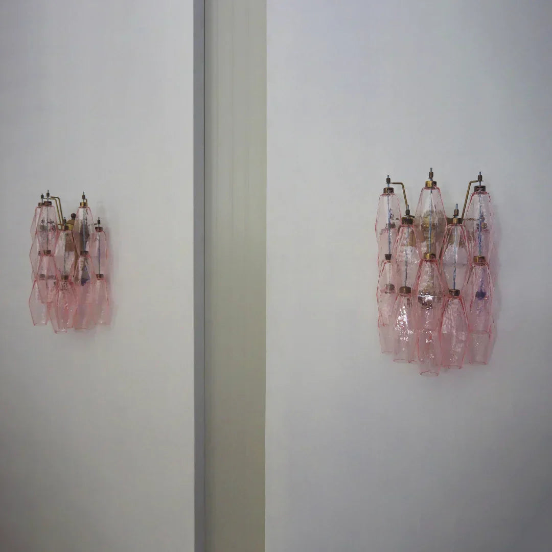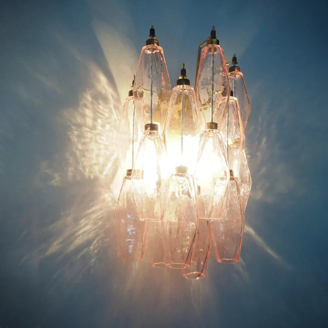Murano Poliedri Pink Glass Wall Sconces. Each lamp is composed of exquisite pieces of glass, casting a beautiful light and effect in any space. Elevate your home with this stunning vintage piece, As decorative detail lighting in any room.
