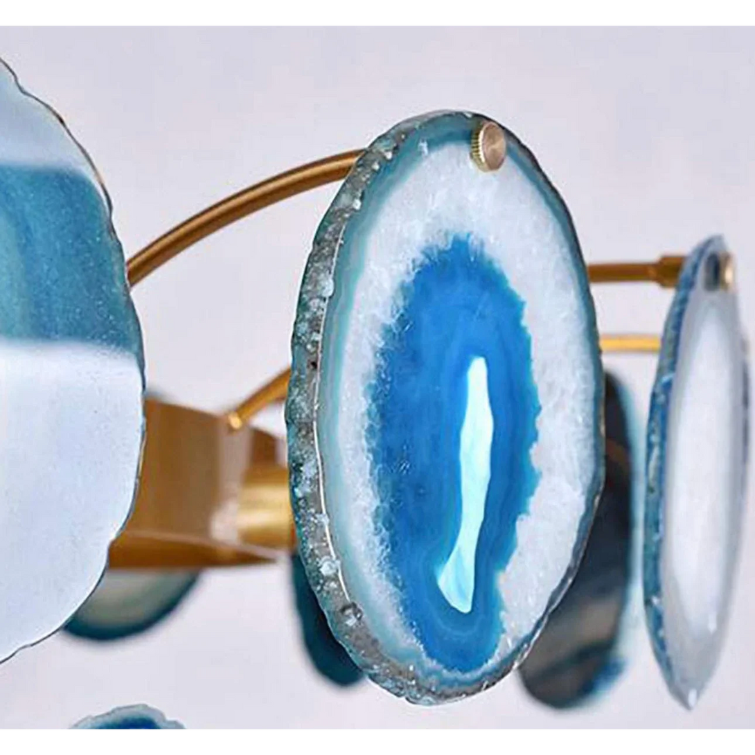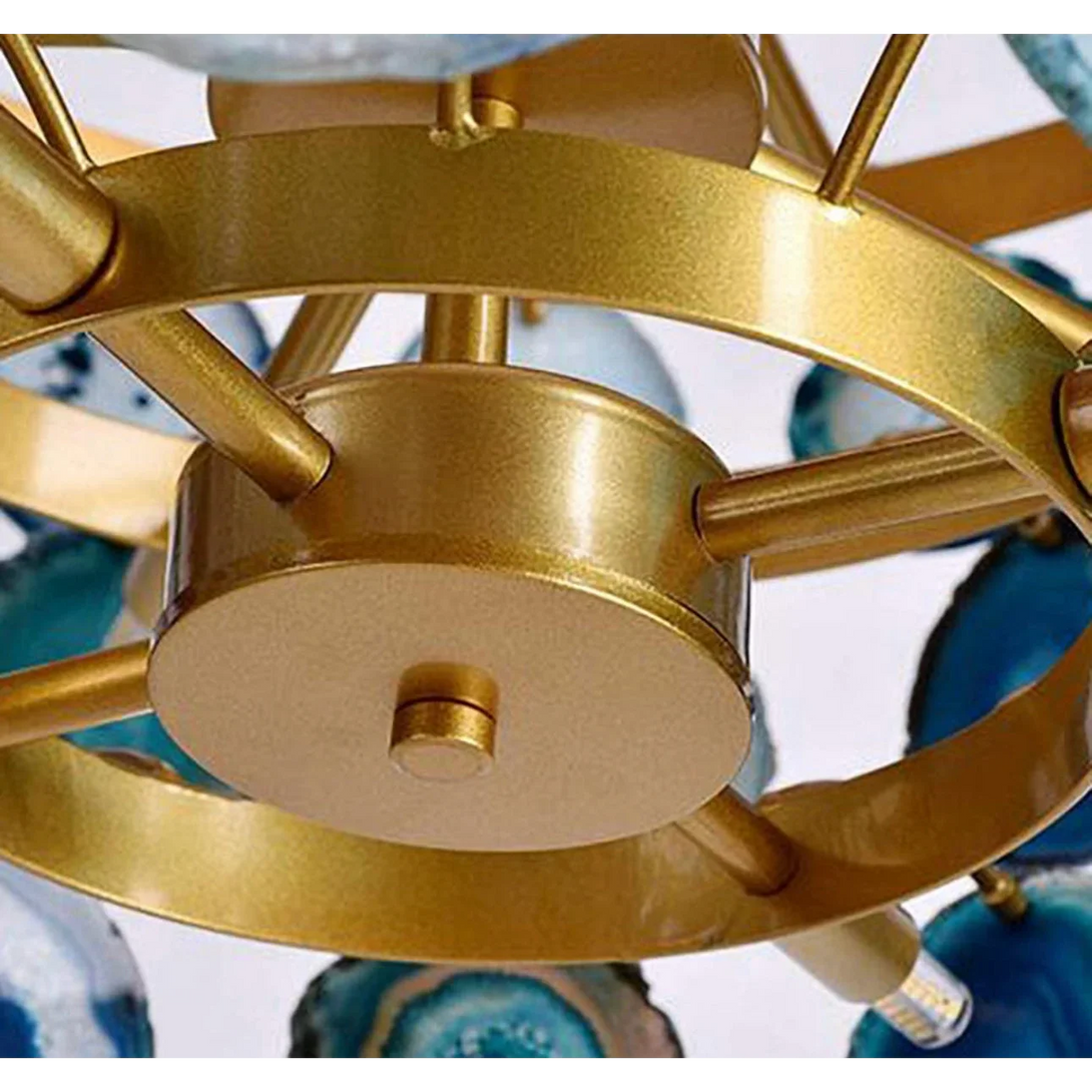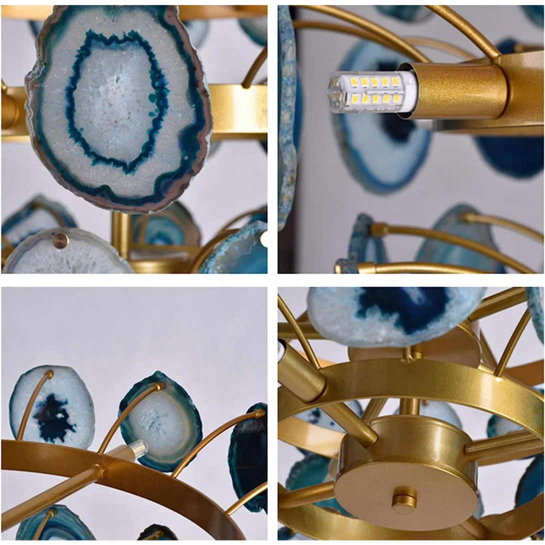 Discover a truly extraordinary lighting masterpiece with our Natural Green Agate Chandelier. This exquisite ceiling light fixture seamlessly blends the timeless allure of stained glass with the mesmerizing beauty of natural green agate. Handcrafted with meticulous attention to detail, this chandelier is a testament to exceptional artistry and embodies sophisticated design. The vibrant hues of green, accented by blues, reds, purples, and pinks within the natural agate slices, create a captivating visual display, infusing your space with unique, natural charm and an enchanting ambiance.