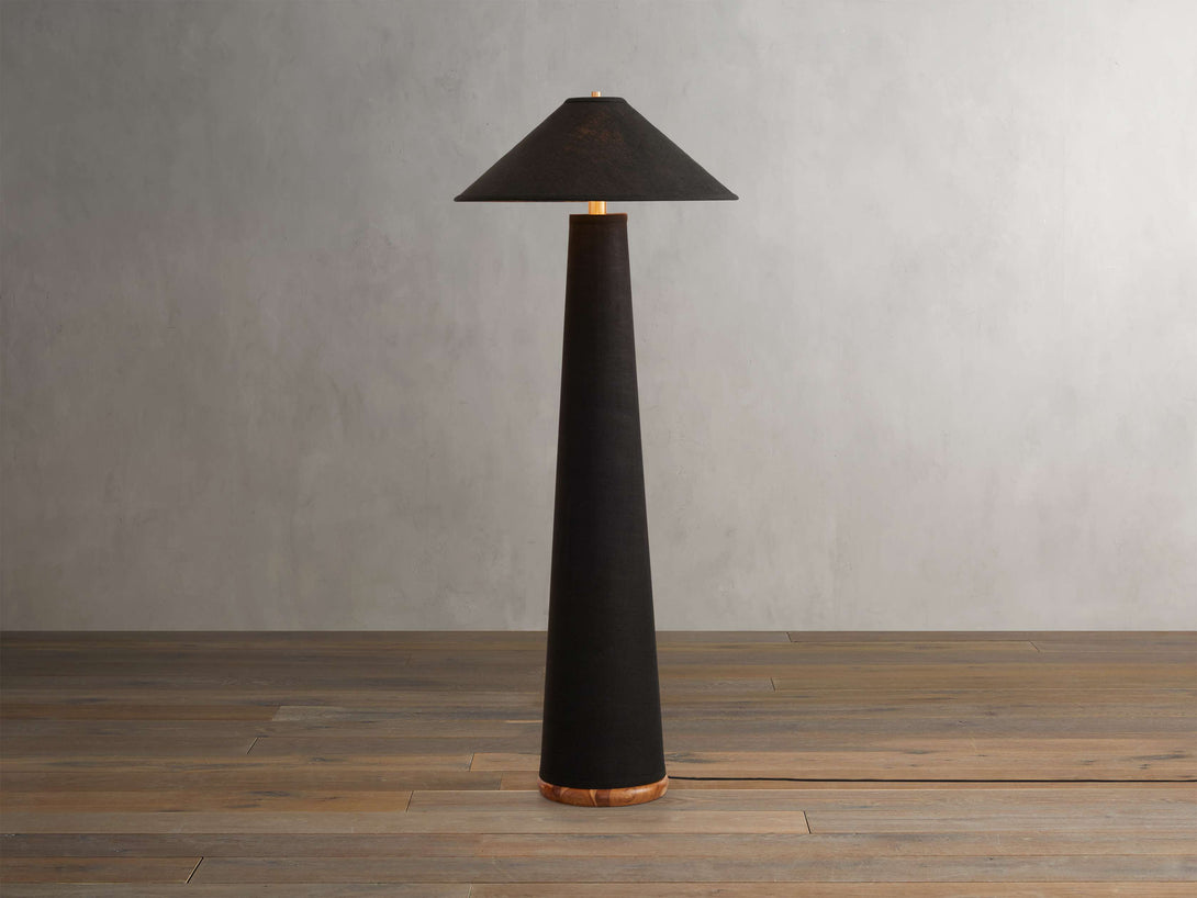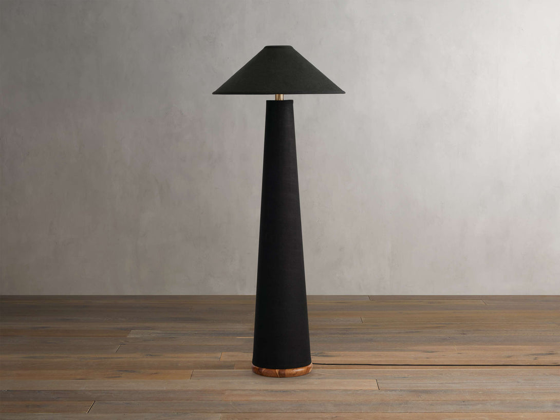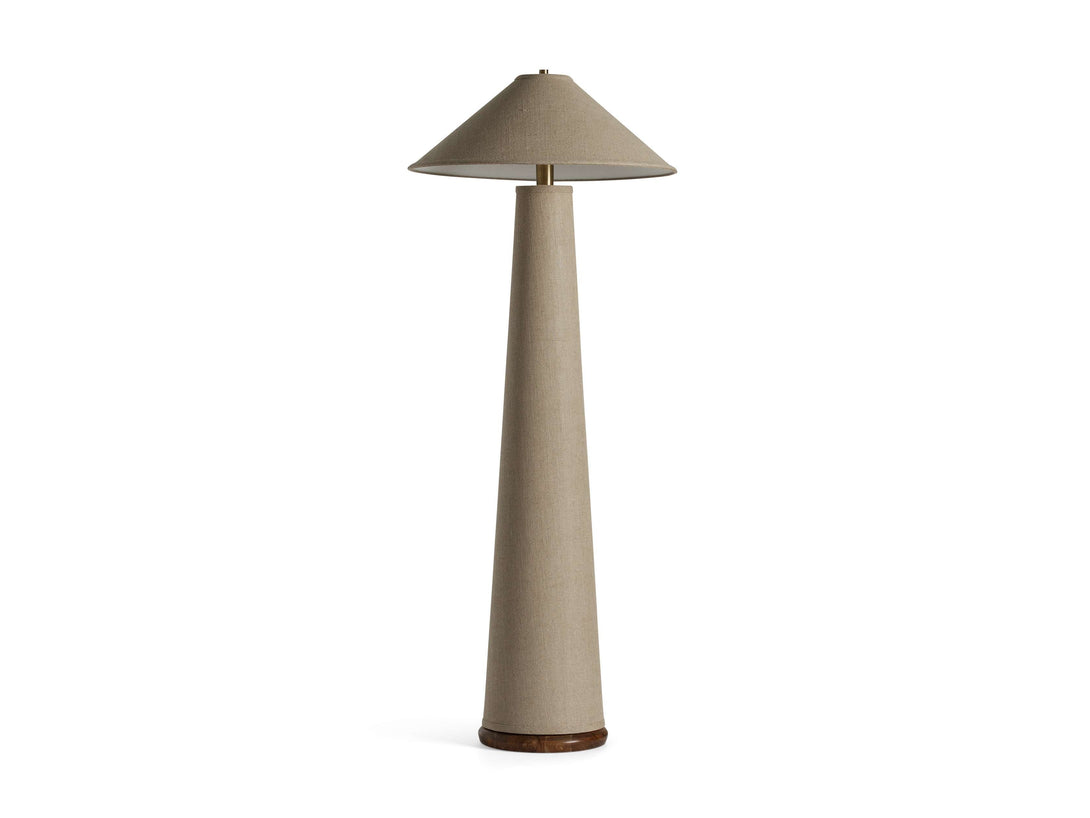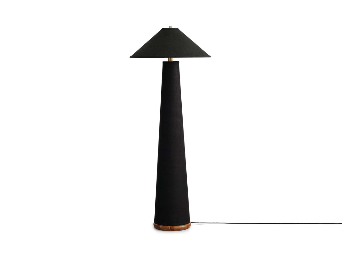 - Crafted from teak wood, linen, and antiqued brass. Brass accents are polished and oxidized to an antiqued finish and feature a clear lacquer for protection.