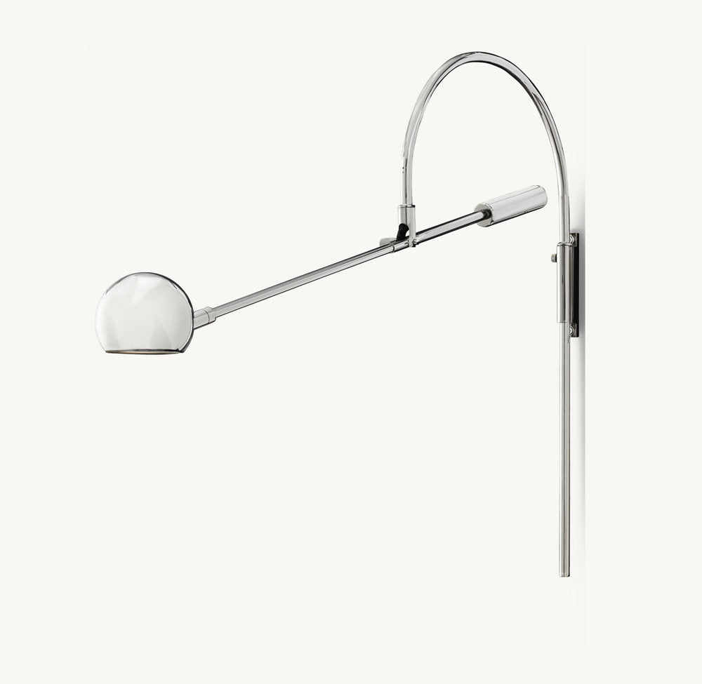An iconic design from 1967, Robert Sonneman's Orbiter® is an American Modern classic. Handcrafted of solid brass, the Orbiter II™ wall lamp is designed on a smaller scale and features LED illumination.