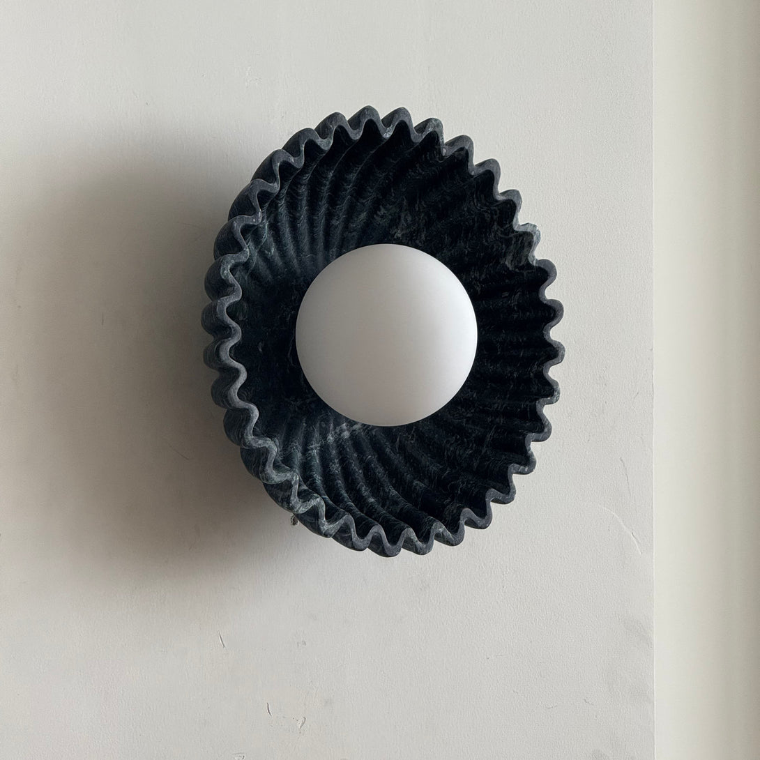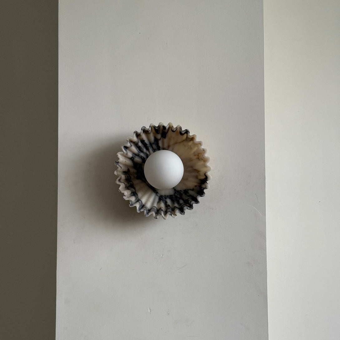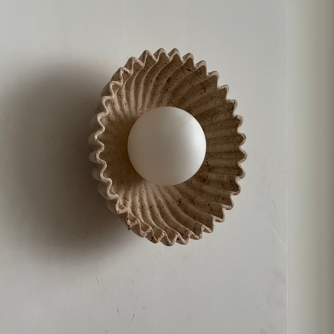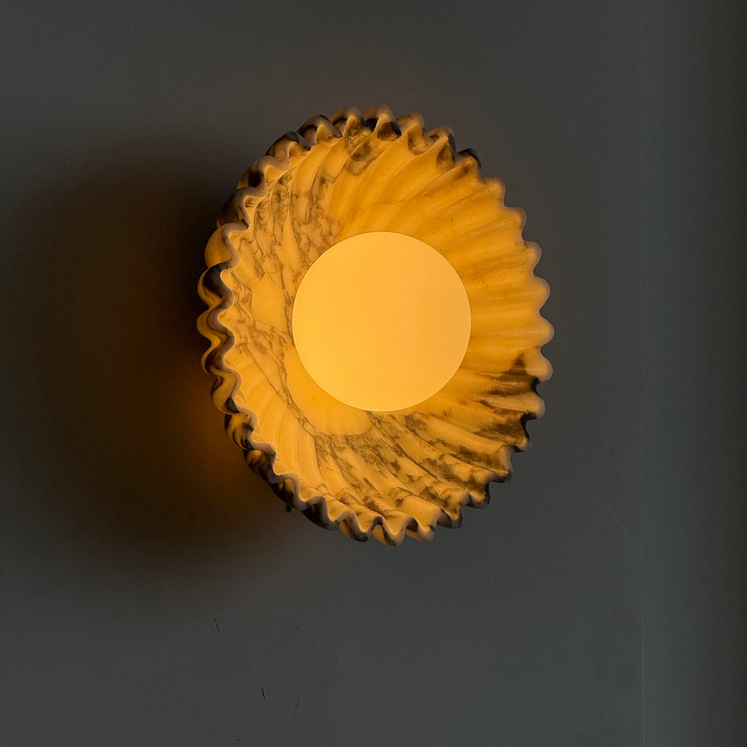 Elevate your space with the Ostro Marble Small Sconce, featuring a refined marble or travertine lamp body paired with a delicate glass lampshade. Its elegant materials create a timeless silhouette that adds both warmth and sophistication, making it perfect for enhancing any room with subtle, luxurious lighting.