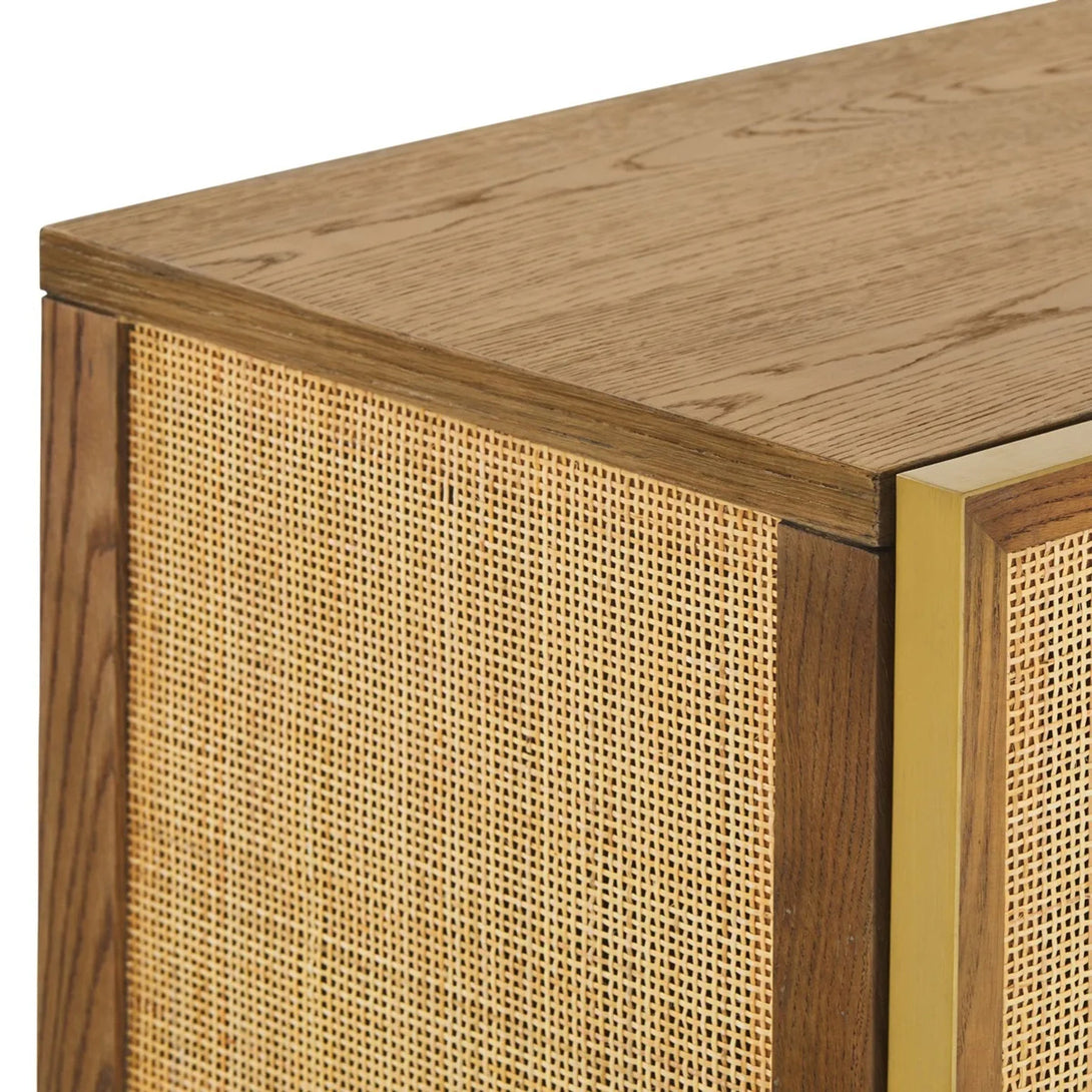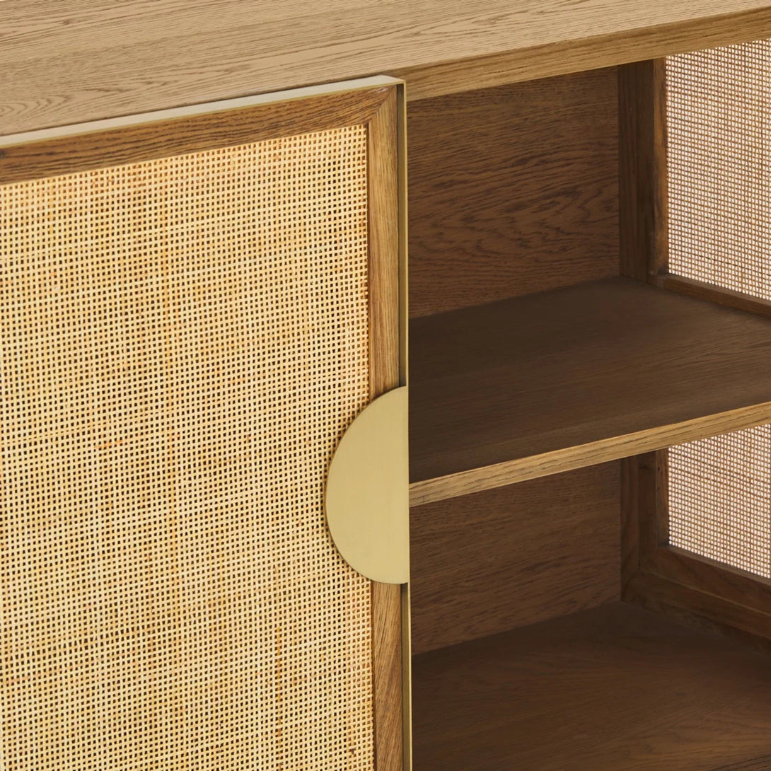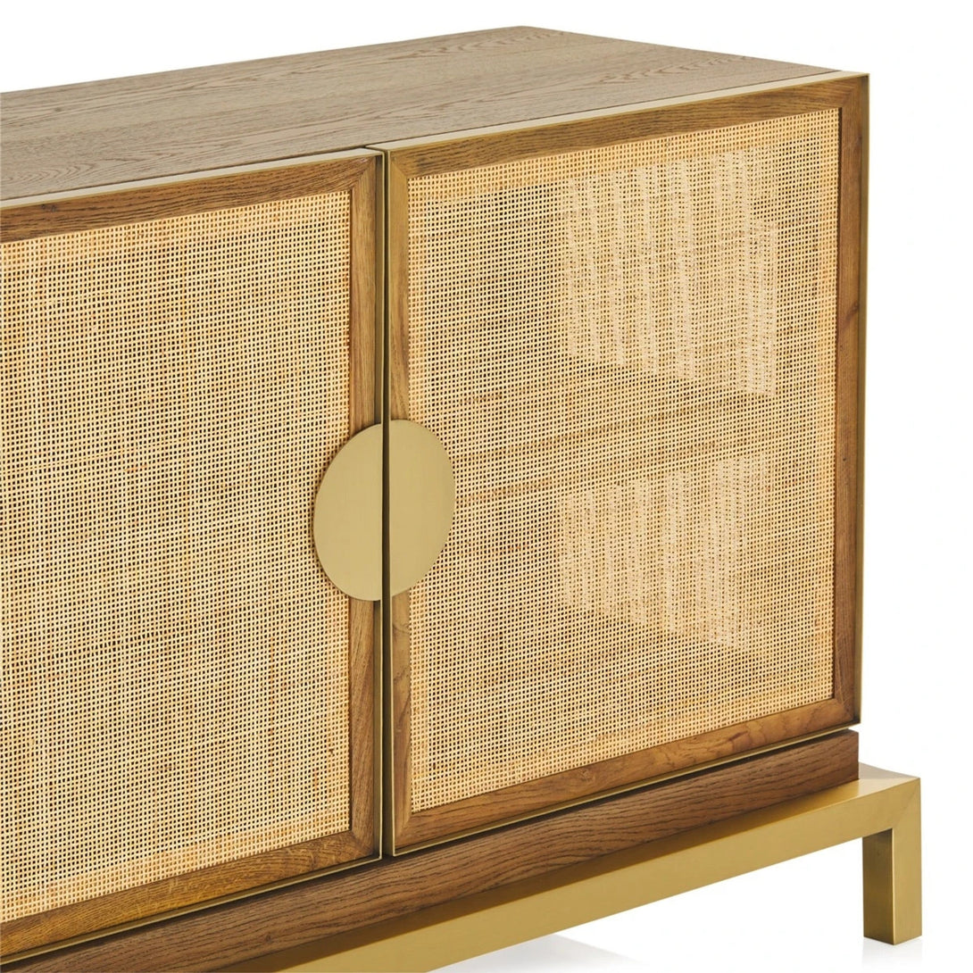 Striking design combining mixed natural materials that enhance its dimensionality.|The Paloma range celebrates a harmonious juxtaposition of scale and texture to deliver timeless allure and palpable cool. Combining the delicate texture of natural rattan framed by solid oak and burnished brass accents in geometric form the range captures the spirit of California in iconic style.