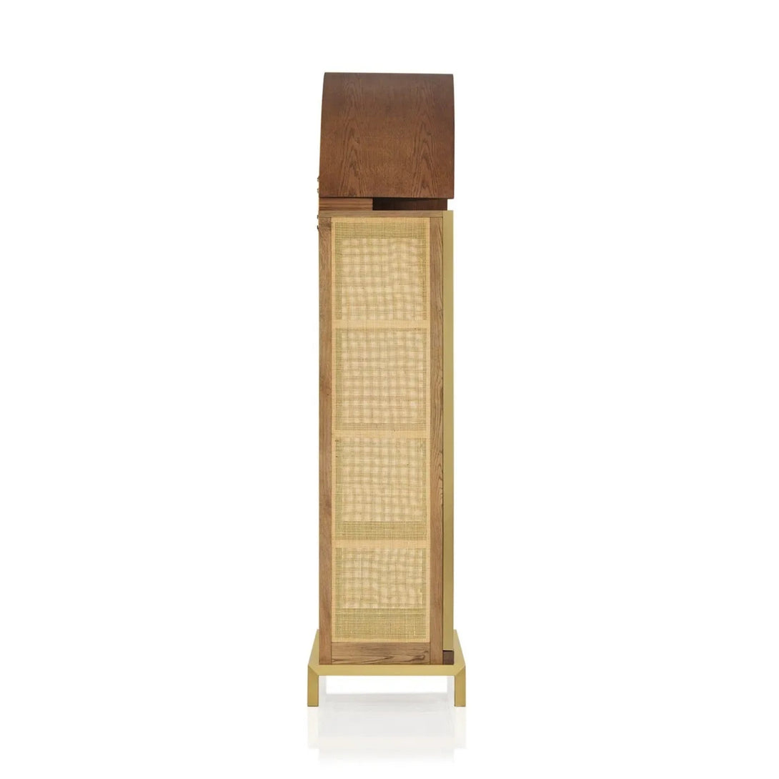 Striking design combining mixed natural materials that enhance its dimensionality.|The Paloma range celebrates a harmonious juxtaposition of scale and texture to deliver timeless allure and palpable cool. Combining the delicate texture of natural rattan framed by solid oak and burnished brass accents and topped with a solid timber curvilinear form the range captures the spirit of California in iconic style.
