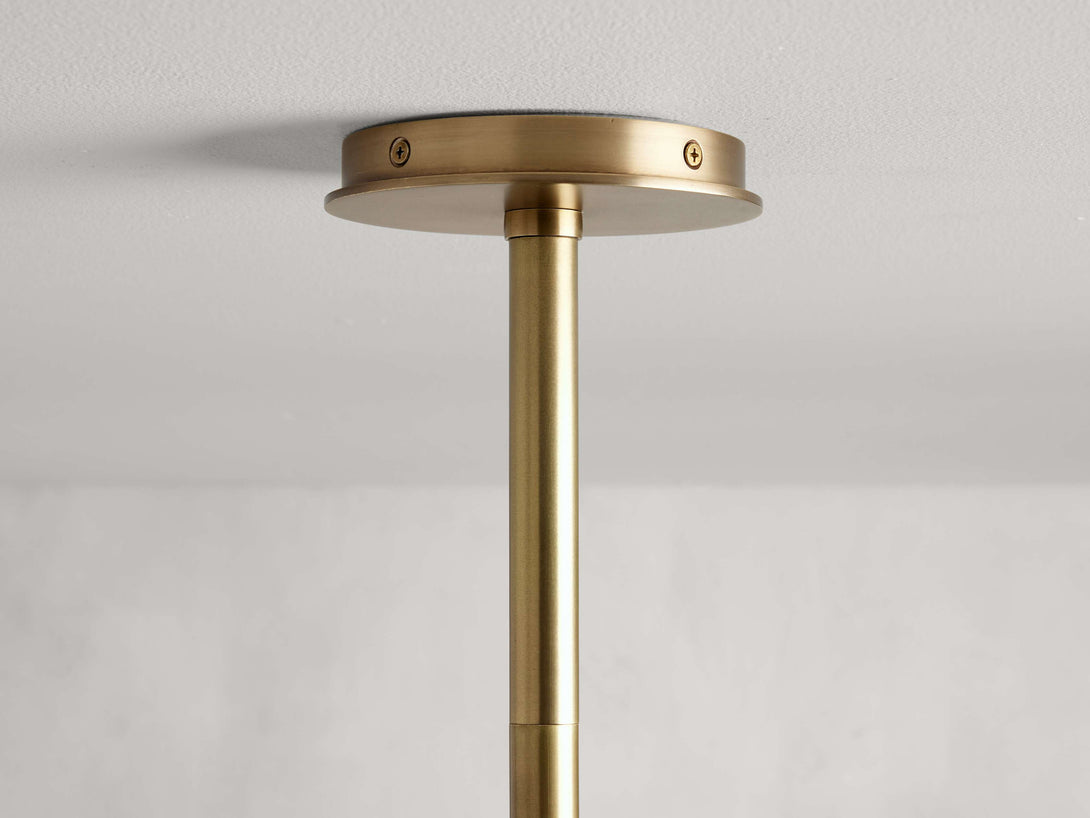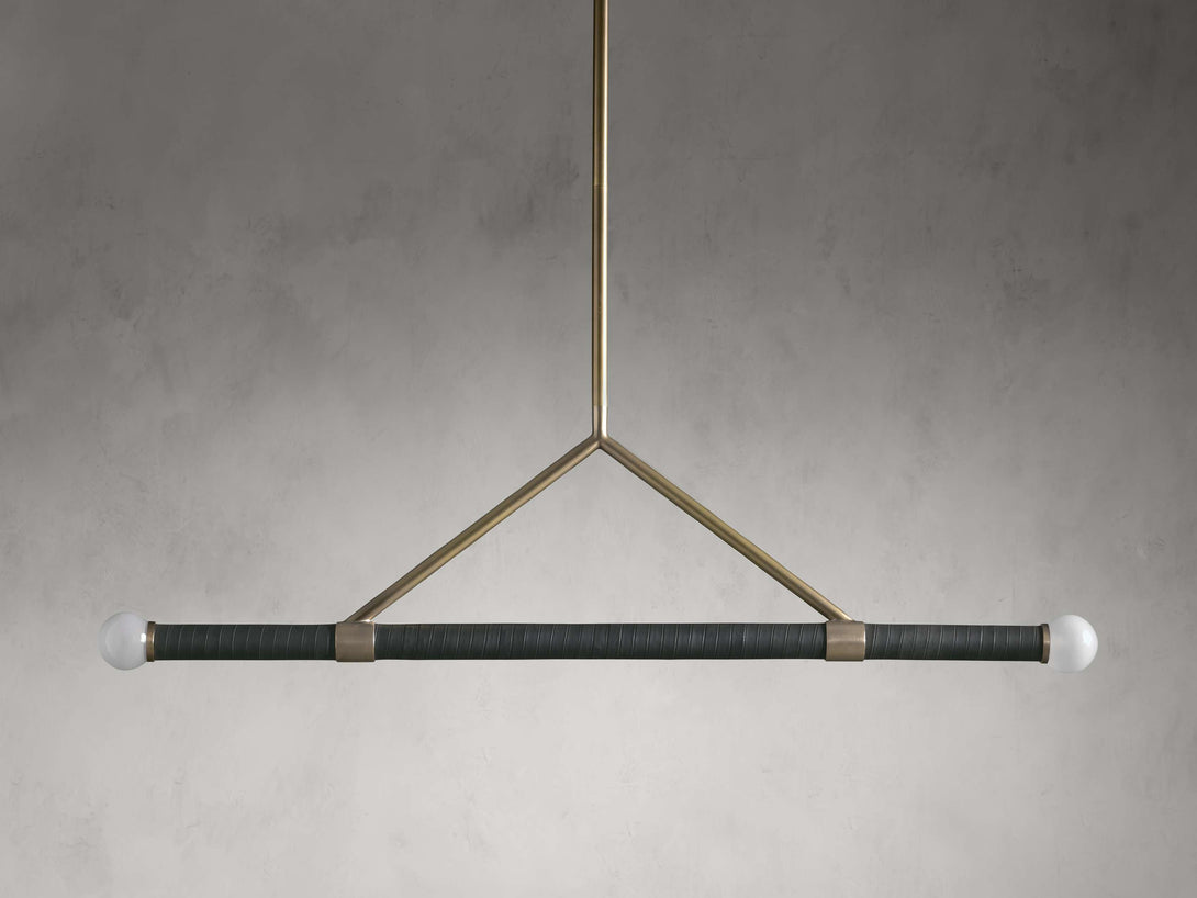- This Arhaus-exclusive collection is crafted from burnished brass or bronze-plated steel with wrapped leather detailing and two frosted glass globes.