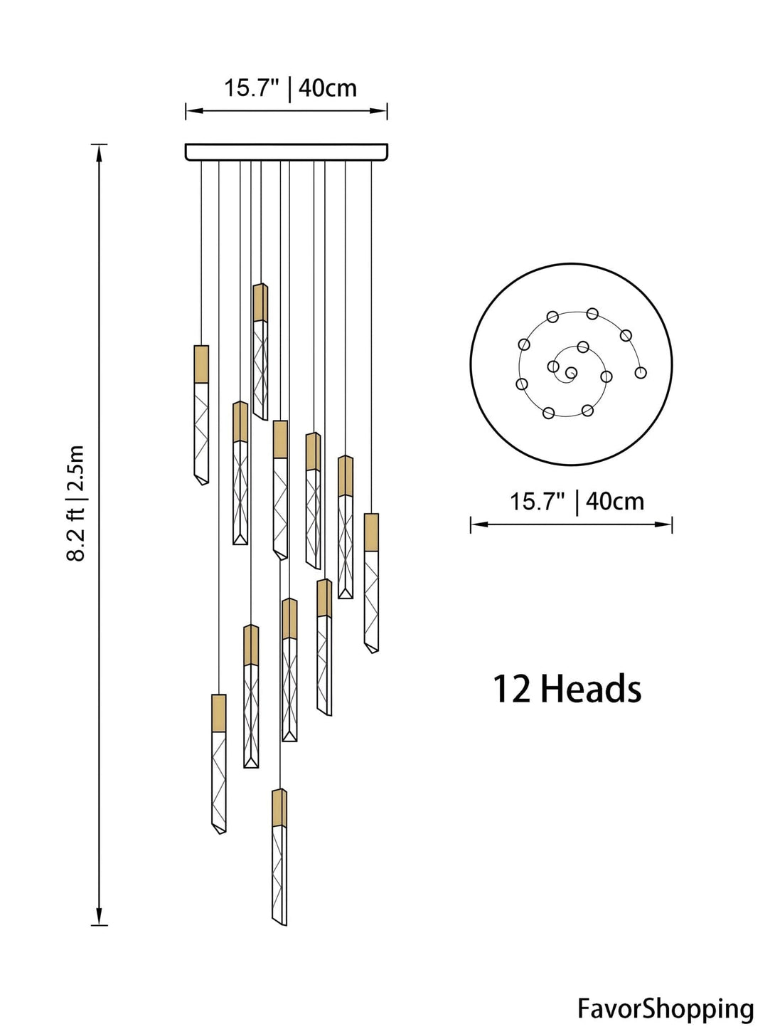 12 Lights | Round | Overall Height 98" / 250 cm ; 15.7" / 40 cm D