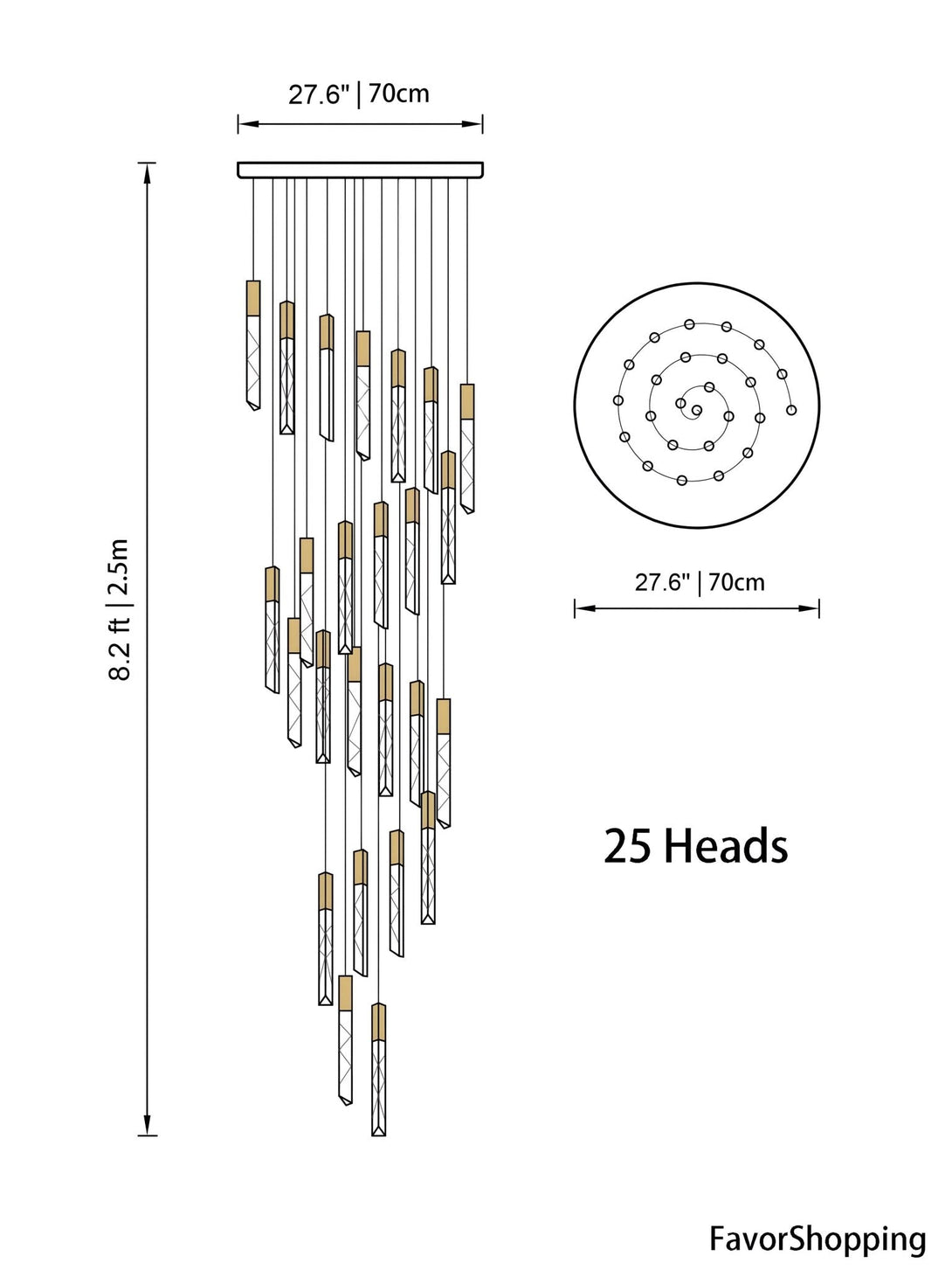 16 Lights | Round | Overall Height 98" / 250 cm ; 19.7" / 50 cm D