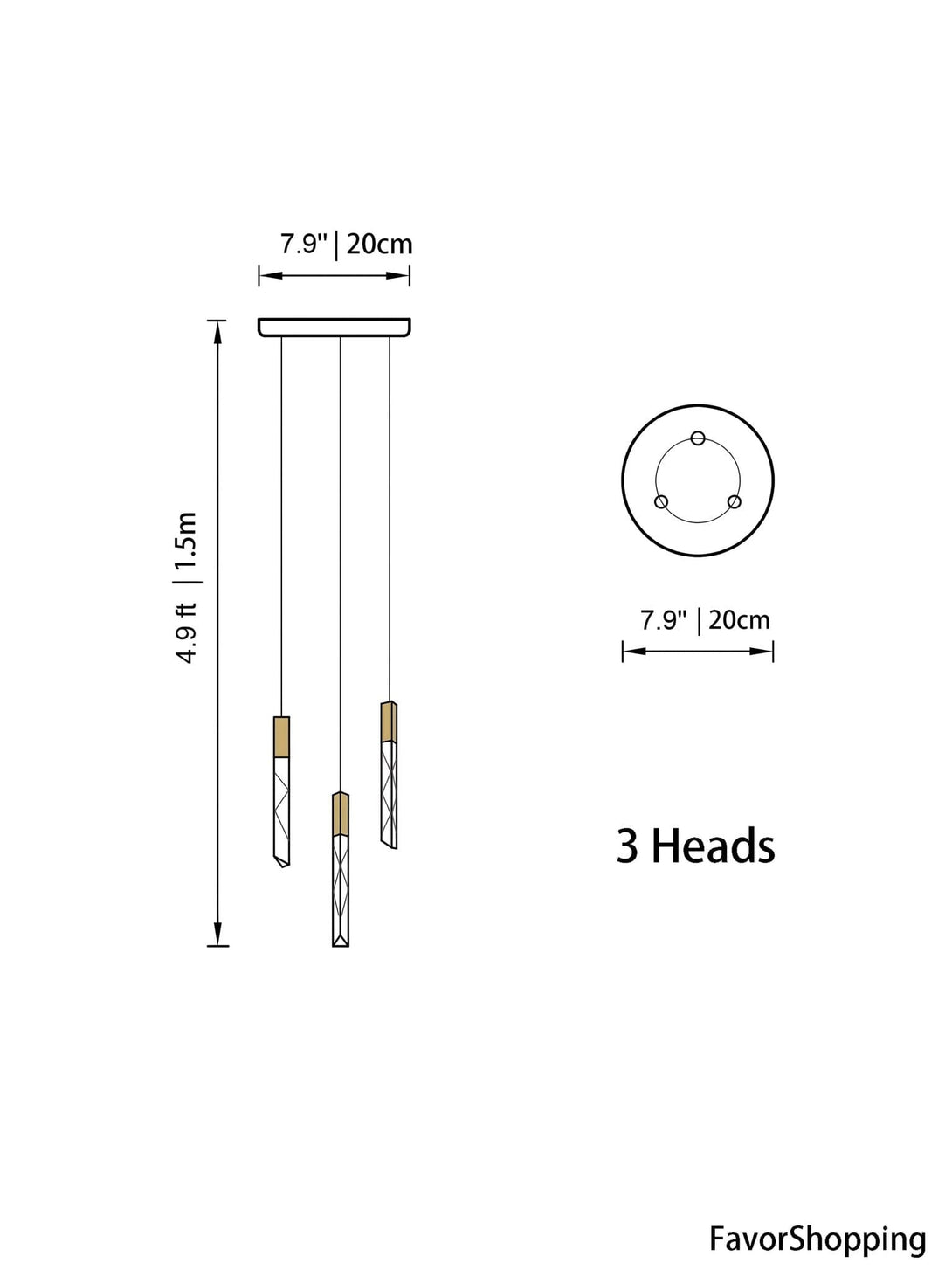 3 Lights | Round | Overall Height 59" / 150 cm ; 7.9" / 20 cm D