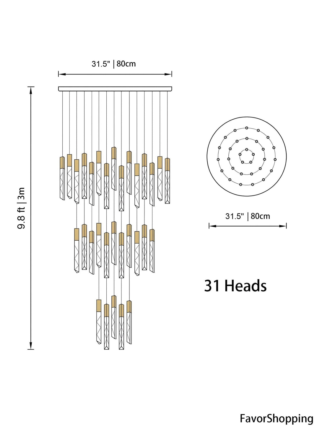 31 Lights | Round | Overall Height 118" / 300 cm ; 31.5" / 80cm D