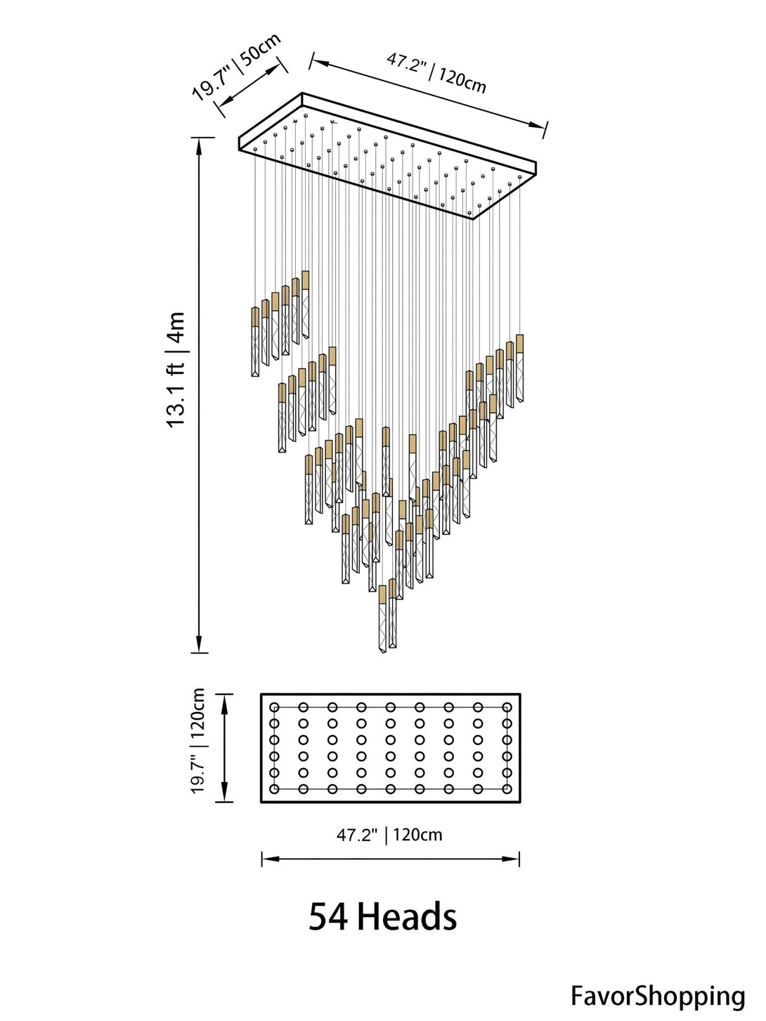 54 Lights | Rectangular | Overall Height 157" / 400 cm ; 47.2" /120 cm L ; 19.7" / 50cm W
