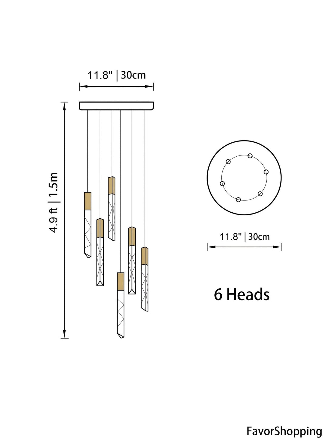6 Lights | Round | Overall Height 59" / 150 cm ; 11.8" / 30 cm D