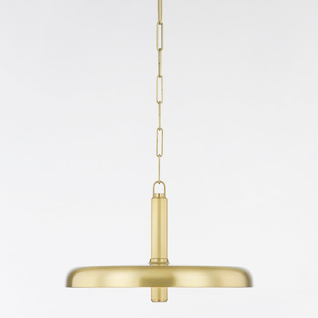 Embrace the slender dome shade and gleaming metal framing of a light fixture with a sophisticated motif. The Reynolds Pendant Light from Radilum maintains simplicity with unmistakable glam, featuring a rich aged brass metal shade and holder and an enticing alabaster lens. This energy-efficient pendant is a perfect partner for dining ensembles, entertaining spaces, and foyers.
