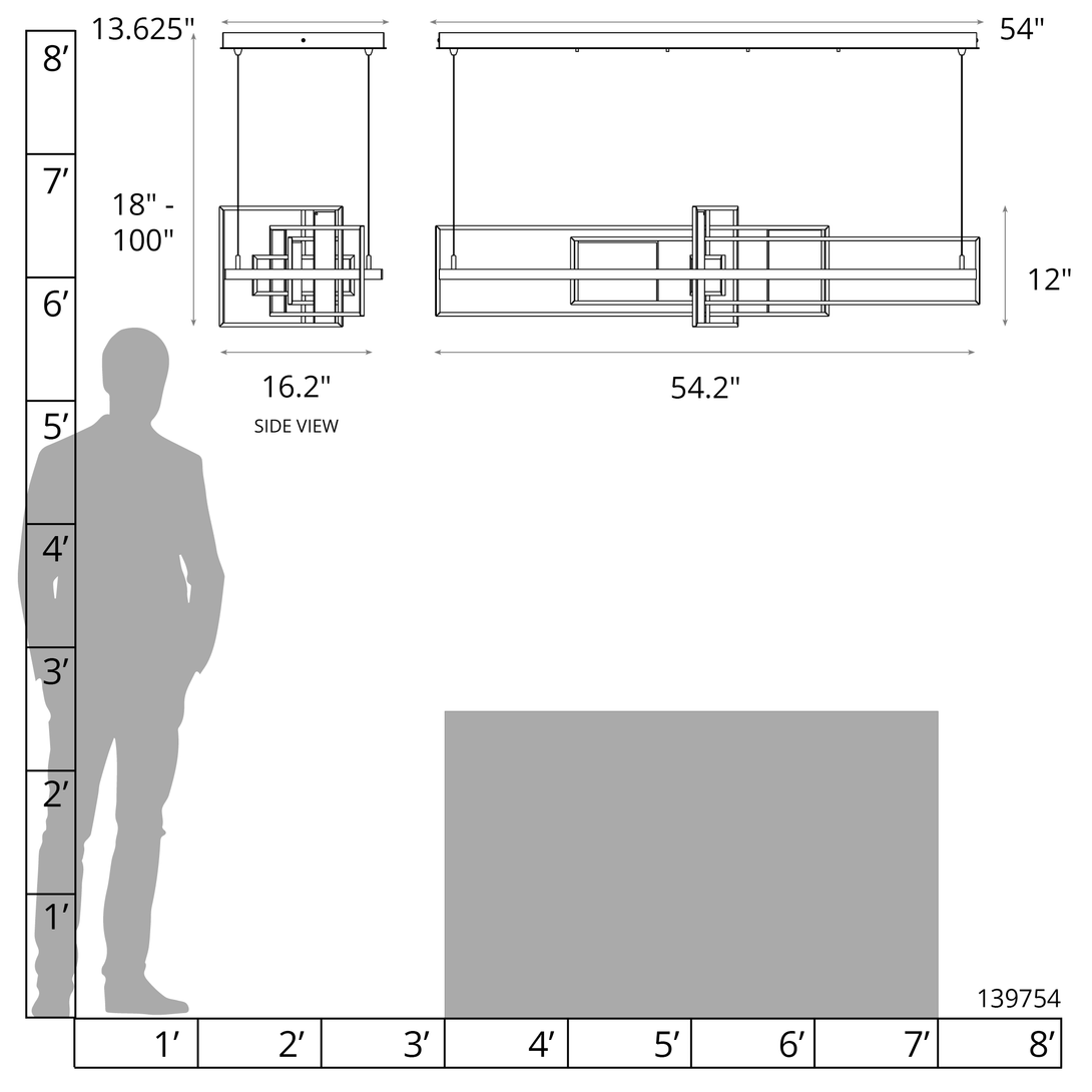 Size: 54.2"L x 16.2"W x 12"H