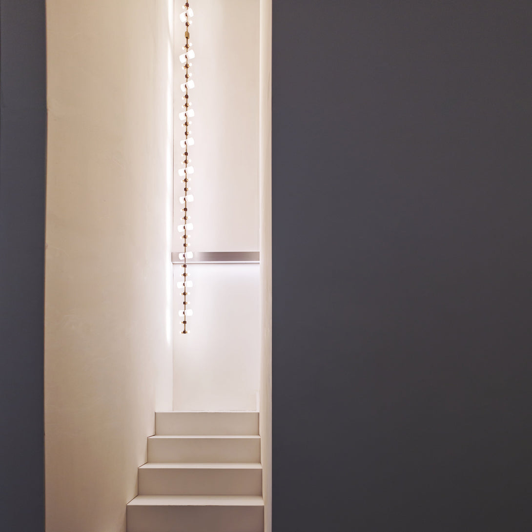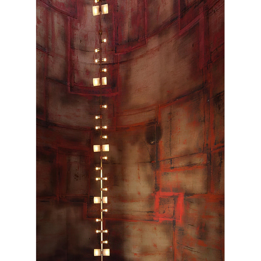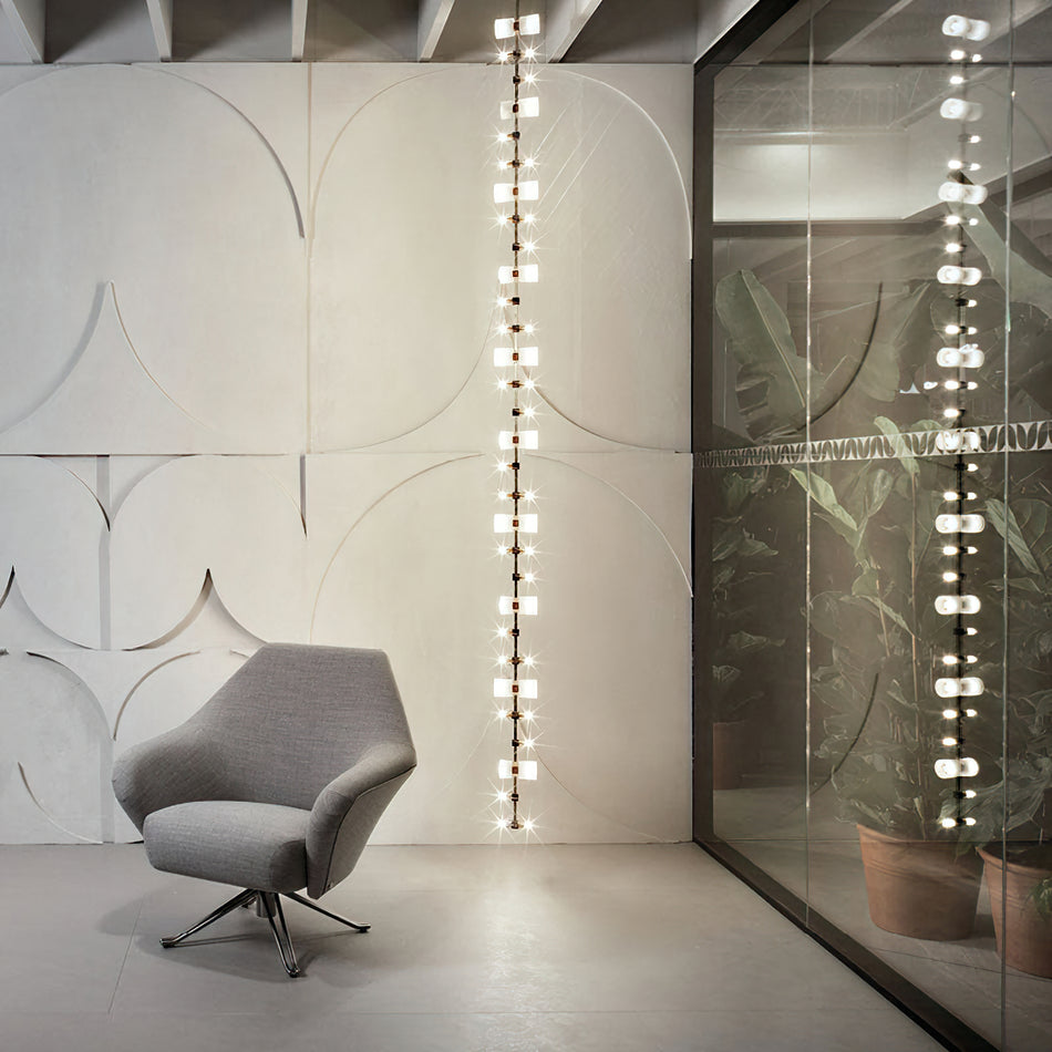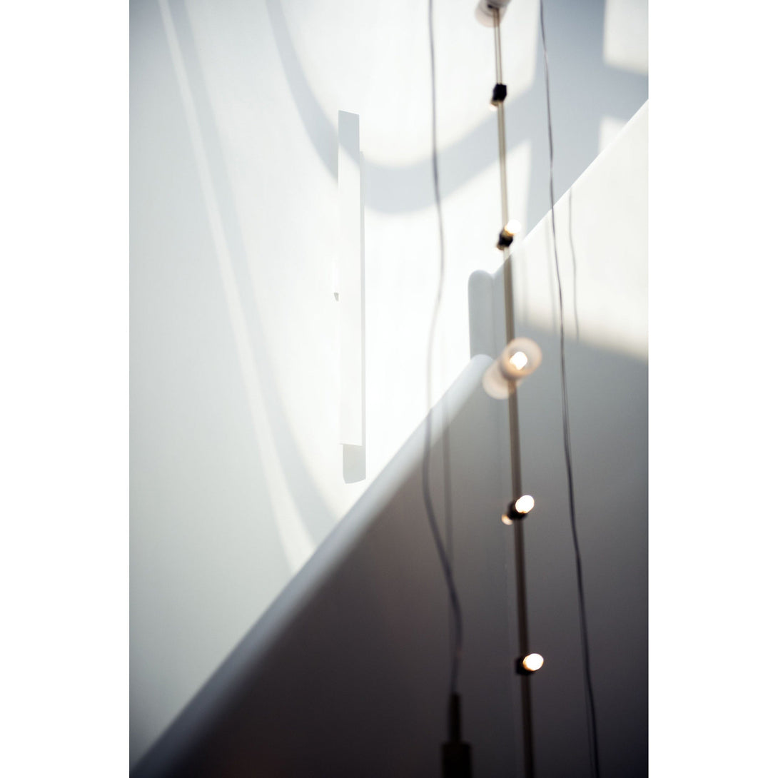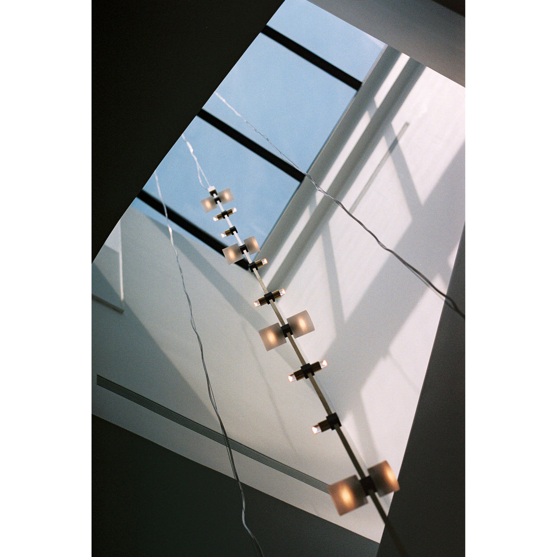 Semper Mia is an indoor ceiling lighting fixture. Made of two parts extruded stainless steel profile forming an electrified track providing diffused light for an electric source, complete with diffuser, acrylic, metal and stainless steel suspension unit.